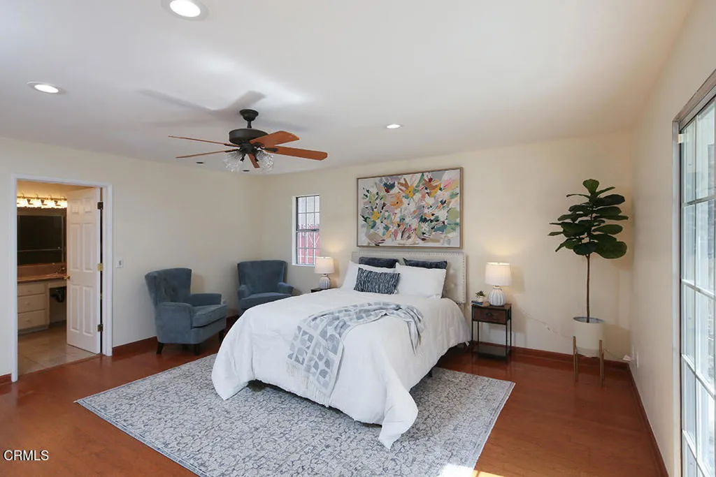 Motivated Seller!Beautiful custom built home located in highly desirable North Monrovia surrounded with gorgeous mountain views. Single level home offers an Atrium, Cathedral ceilings, formal living room, formal family room with a fireplace, lots of natural light, central air & heat, a total of 4 bedrooms; A primary suite along with a private guest room with its separate entrance, kitchenette & separate laundry area. 2 car detached garage with a long driveway large enough for an RV or boat, Rear yard with Pool and sitting area. Property has leased solar panels.