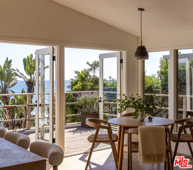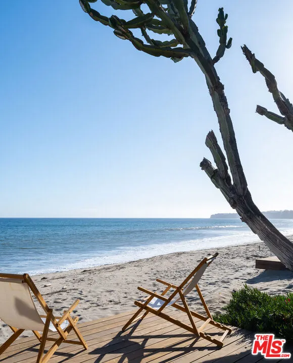 Introducing The Cactus House, a rare opportunity to experience a private mid-century beach house on one of the most exclusive rows of homes on the Malibu coastline. This unique architectural property offers unparalleled ocean views and beach frontage spanning a rare 58 feet. Originally designed by Charles Kanner, the home was meticulously reimagined in 2021, seamlessly blending classic mid-century design with the warmth and tactility of the Mediterranean. Natural Cactus front and center, the homes minimalistic design connects perfectly to nature, allowing the beauty of the surroundings to take center stage. French doors open entirely to a large teak deck with views to Point Dume, the lower level features a gated terracotta courtyard leading onto a dry sandy beach enjoyable at all tides. Escondido Beach and the stunning Pacific Ocean are your personal backyard at this extraordinary home, perfect for entertaining and serene oceanfront indoor/outdoor living. Residents will enjoy being a few yards away from the private beach staircase to one of the area’s renowned dining establishments Geoffrey’s, and close proximity to hike Escondido Falls or shop at Cross Creek.