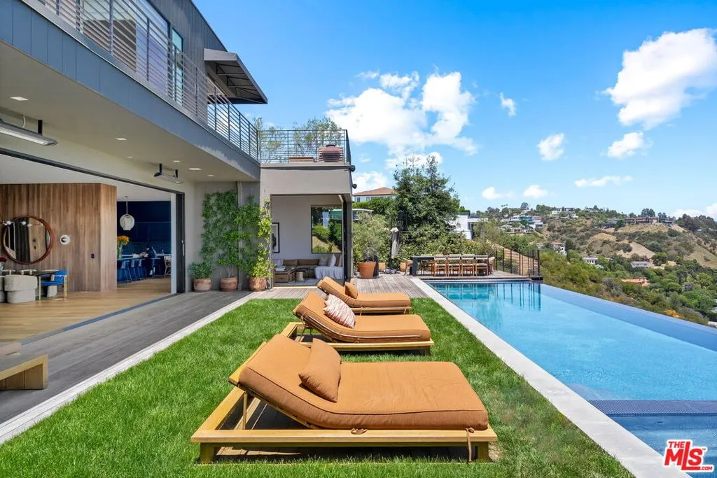 This stunning contemporary estate with sweeping 360-degree views is sure to take your breath away the moment you arrive. Perfectly positioned on one of Bel Air’s most desirable corridors, 1030 Somera is a design-forward residence that redefines California luxury living. Expertly crafted by HEH in collaboration with Van Studnitz Architects and Studio Preveza, this gated home boasts grand scale, a warm mid-century aesthetic, and extraordinary quality throughout. Expansive windows frame panoramic views of the ocean, city, and canyonsoffering unforgettable sunrises and sunsets from nearly every room. Organic textures and clean architectural lines create a serene, modern atmosphere across the open floor plan, evoking a relaxed yet sophisticated ambiance. Floor-to-ceiling glass doors offer seamless indoor-outdoor flow to expansive terraces, a 50-foot infinity-edge pool, and a peaceful hillside garden filled with citrus trees, French lavender, and Tuscan rosemary.The six-bedroom layout includes a showstopping primary suite with a cozy sitting room, an oversized private balcony, and a spa-level bath. Three additional guest or children’s suites are also located on the upper level. The main level welcomes you with mesmerizing views and features a dramatic living and dining area, a family room, and a state-of-the-art kitchen. The lower level, bathed in natural light, includes a home theater, gym, and guest quarters with a private entranceideal for hosting or extended stays. Every space is curated with a gallery-like aesthetic, perfect for displaying art while remaining warm and versatile for both entertaining and daily living. Additional highlights include a three-car garage and a gated motor court for ample parking. Private, polished, and perfectly situated, this one-of-a-kind residence offers the ultimate “Wow” factora rare opportunity to live above it all, just five minutes from Sunset and all the best the Westside has to offer.