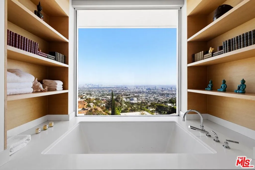 This sleek Paul McClean-designed contemporary home is located on the coveted eastern side of Blue Jay Way, offering one of the most desirable perspectives in prime Hollywood Hills’ Bird Streets. The home’s open-concept design features soaring ceilings and disappearing Fleetwood doors that create a seamless flow for indoor-outdoor living. The open-concept gourmet kitchen is equipped with top-of-the-line Miele appliances, a large island, and bar top seating. Fall asleep to city lights and wake to the sunrise in the glass-wrapped primary suite, featuring dual bathrooms and closets. Outside, you’ll find a newly refinished pool with chaise lounges and an outdoor cabana, complete with a built-in BBQ, fireplace, and heaters. Available fully furnished for month-to-month or long-term leasing. Additional photography is available upon request.