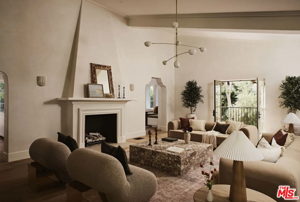 Casa Veleta is a reimagined Spanish jewel created by the renowned luxury home design and build partnership of Aeries Development and AMG. Fresh from a total renovation completed in 2025, classic 1920’s details embrace modern day conveniences. Behind a high hedge and past a wrought iron gate, a glamorous fountain and outdoor fireplace invoke historic Montecito. The courtyard sets the stage for a sensory experience beyond. Bathed in light, the entry stair hall and all interior walls are clad in hand-troweled plaster masterfully crafted by artisans. A grand living room with vaulted ceilings is ideal for large-scale entertaining. Elegant formal dining and wine rooms open to an outdoor kitchen and dining area. A gourmet kitchen with oversized marble island and banquette seating opens to a vast terrace and pool beyond. The primary suite is a world apart, with large marble bath, retail quality closet, and a wall of French doors opening to a private terrace with fire feature. Three additional bedrooms (with walk-in closets and en-suite bathrooms) and a common terrace space complete the upper floor. Additional features include a private office (or generous fifth bedroom) with fireplace and full en-suite bathroom, a complete chefs/catering kitchen, a gym/wellness room with sauna that leads directly out to the pool and hot tub, and a gorgeous separate guest villa/ADU. This is an exceptional opportunity to own a piece of living art on the prized 600 block of Arden. Surrounded by important estates, this is hands-down one of the finest locations in Beverly Hills. Casa Veleta is a rare gem for the most discerning buyers.