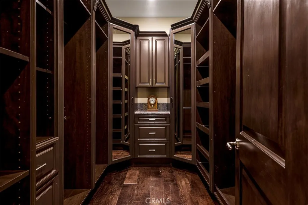 Spanning approx. 7,500 sq. ft. across 3 levels, the home features 7 en-suite bedrooms and 7.5 baths, each with private patios or balconies that welcome natural light and garden views. The grand primary suite includes dual oversized closets, a spa-like bath with soaking tub overlooking the grounds.