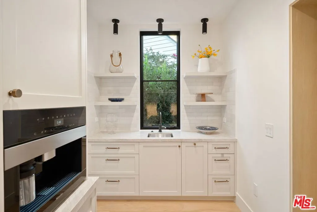 Exceptional custom residence blending contemporary sophistication with timeless elegance. Interiors feature wide-plank oak floors, natural wood elements, and a refined mix of slab finishes and custom cabinetry. The chef’s kitchen is appointed with Sub-Zero refrigeration, Bluestar range, and a Miele espresso maker, opening to a soaring family room with double-height ceilings and walls of glass. Resort-style outdoor living includes a pool, ADU, built-in BBQ and beverage center, fire pit beneath the pergola, and landscaped grounds with a private entry water feature. Additional highlights: state-of-the-art theater, finished basement with gym, temperature-controlled wine cellar, home automation, elevator to all levels, two laundry rooms, a second Miele espresso maker in the primary suite, and three-car garage. A rare opportunity to own a thoughtfully designed estate offering luxury, comfort, and style in one of Los Angeles’ most coveted neighborhoods.