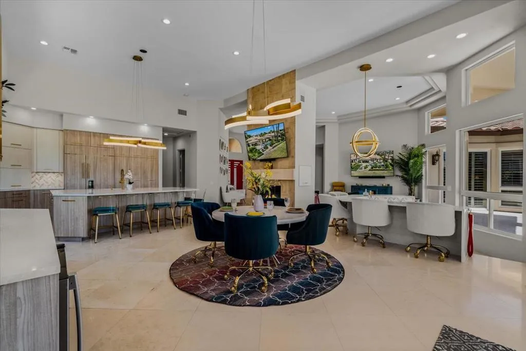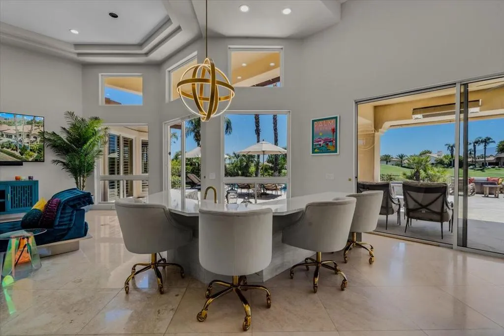 ICONIC DESERT LUXURY. This rare opportunity to experience magnificent southern mountain views from an exceptionally featured property within the timeless beauty of Rancho La Quinta Country Club, does not occur very often! This meticulously renovated and updated contemporary home places a premium on exceptional living spaces. With five bedrooms and five and a half baths, shared between two casitas and the main home. This masterclass in minimalist elegance spans 3,822 square feet of seamless lines and ease of transitional spaces all surrounded by a canvas of subdued and ward colors.This oasis was built to support a passion for an active lifestyle and five-star appetite! Among the many upgrades, this home features all-new plumbing, modern lighting, fans, and elegant plumbing fixtures. With a custom Executive Chef’s kitchen designed by ”Kitchens and Baths By Lynn”, this space blends function and elegance equipped with Cambria Quartz surfaces, soft-close dovetail drawers, and an XL central island surrounded by an ILVE 48” Nostalgic freestanding range/double oven, two dishwashers, warming/slow cooker oven, sub-zero refrigerator and a buffet space which features ” Larson Juhl” framed gold cabinets. With an additional kitchen window, the San Jacinto mountains invite their brilliance into this space while inspiring your heart to explore the exceptional exterior, which boasts large entertaining area with firepit and heaters! Beautiful custom pool and spa. AVAILABLE for lease 2025/2026 SEASON