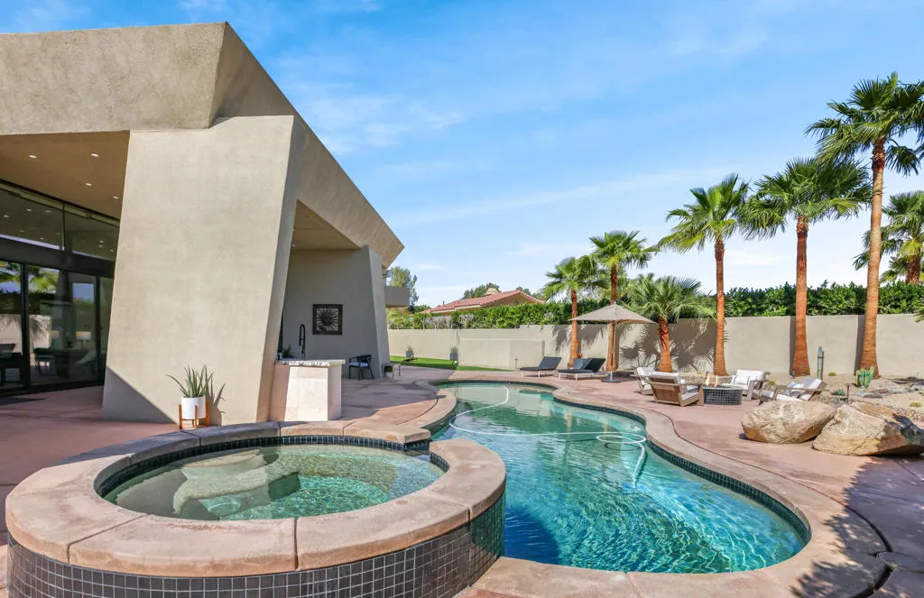 Luxury Contemporary Rancho Mirage RetreatExperience the ultimate in desert luxury at this custom-built estate in the heart of Rancho Mirage: neighbor to the famed Annenberg Estate and Disney’s highly anticipated Cotino community. Just minutes from world-class dining and shopping at The River, this private residence is designed for discerning travelers who expect the very best and you can even bring man’s best friend!Indulge in a true resort lifestyle with a free-form pool and spa, outdoor shower, fire pit, and multiple patios seamlessly blending indoor and outdoor living. Walls of panoramic glass flood the home with desert light, framing serene views and creating a dramatic backdrop for relaxation or entertaining.Every detail is thoughtfully curated: Sonos surround sound throughout, electronic blackout shades, one-touch lighting, multi-zoned climate control, sport court, and a choice of premium grills (Gas BBQ and Traeger Smoker). Inside, a full wet bar with ice maker, media room with smart TVs, and a chef’s kitchen elevate every gathering. Hundreds of prepaid Prime movies are included for your enjoyment.Four private suites each feature en-suite baths for ultimate comfort. The king primary suite boasts a lounge area and spa-inspired bath. Two queen suites and a private-entry Casita with its own sitting area offer flexibility and privacy for guests.Additional amenities include a two-car garage plus driveway parking, a private laundry room, bi monthly housekeeping and the seamless convenience of a smart home.This is not just a vacation home, it’s a sanctuary of modern elegance, designed for travelers who want to experience Rancho Mirage in uncompromising style.Rental Details:Available now!$834/night + $50/night utility fee.$595 move-out cleaning fee, $400/mo bi-monthly housekeeping service, $188 admin fee.$5000 refundable security deposit.One dog welcome up to 50 lbs @$45/day plus a refundable $500 deposit.Sorry, no pit bull breeds permitted.30-day minimum stay required. BookedMarch 2026.No Smoking.
