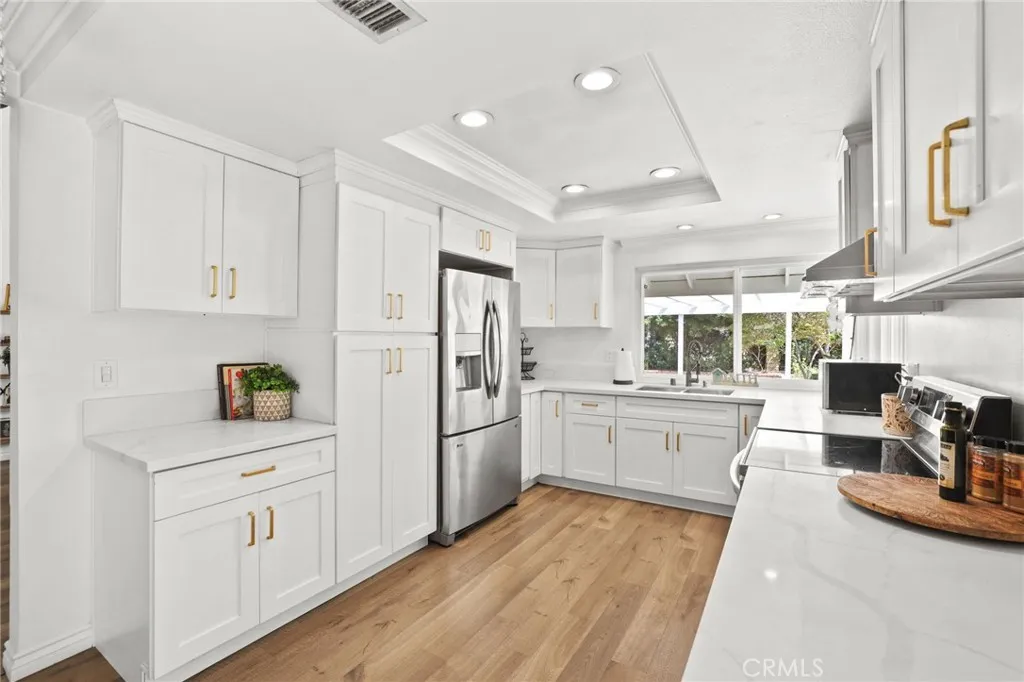 Welcome to 463 S Westridge Cir in Anaheim Hills — a beautifully updated single-story 3-bedroom, 3-bath home in the highly sought-after Westridge community. Step inside to soaring ceilings and abundant natural light that highlight a bright, open layout. Two gentle steps lead to the formal living room, now enhanced with sleek gold-tone metal railings that complement the home’s modern design.