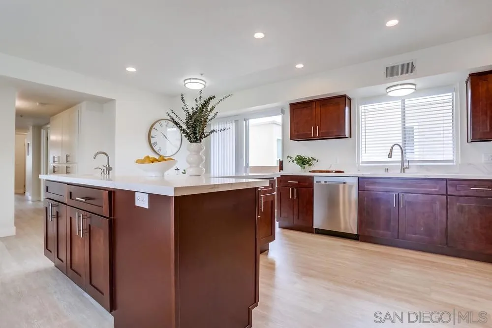 Incredibly rare, almost 2,000 square foot single level condo, in the heart of Crown Point, Pacific Beach. SHORT TERM RENTALS ALLOWED in the complex- projections attached! Beautifully remodeled with over $150,000 in new luxury flooring, quartz countertops, real wood cabinetry, stainless steel appliances, lighting, fixtures, fresh paint throughout, & more. Featuring a spacious floor plan with a dedicated dining area, formal living room with a fireplace, & a family room connected to the open kitchen which includes a large island & breakfast nook. This home showcases our temperate beach climate with 5 private outdoor spaces totaling approximately 400 square feet & the largest located right off the family room with plenty of space for entertaining, dining or watching sunsets over the neighborhood. The large primary bedroom has a walk-in closet, retreat space next to the two way fireplace, attached balcony & spacious, elegant bathroom with soaking tub, separate shower & 2 sink areas. Additional features: dedicated laundry room, plenty of storage/linen closets, recessed lighting & private/secure 1 car garage with additional off street parking spot behind the garage. This location is hard to beat…only 1 block to the Bay- sand, bike path, views or two blocks to the commercial hub for Crown Point- the famous Rocky’s burger, new Tajima Ramen, North Park Beer Company, coffee shop, bar/restaurant & a market. Come live the true beach area lifestyle…walkability, sun/sand & enjoyment!