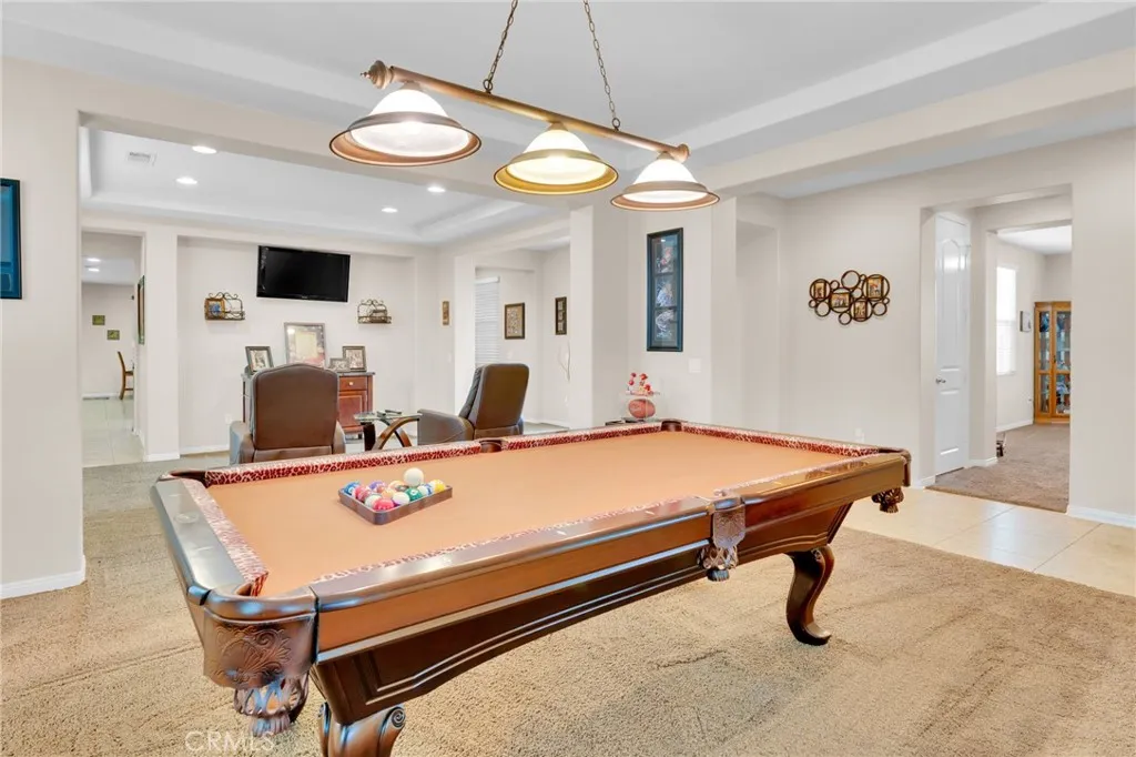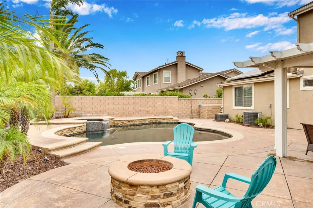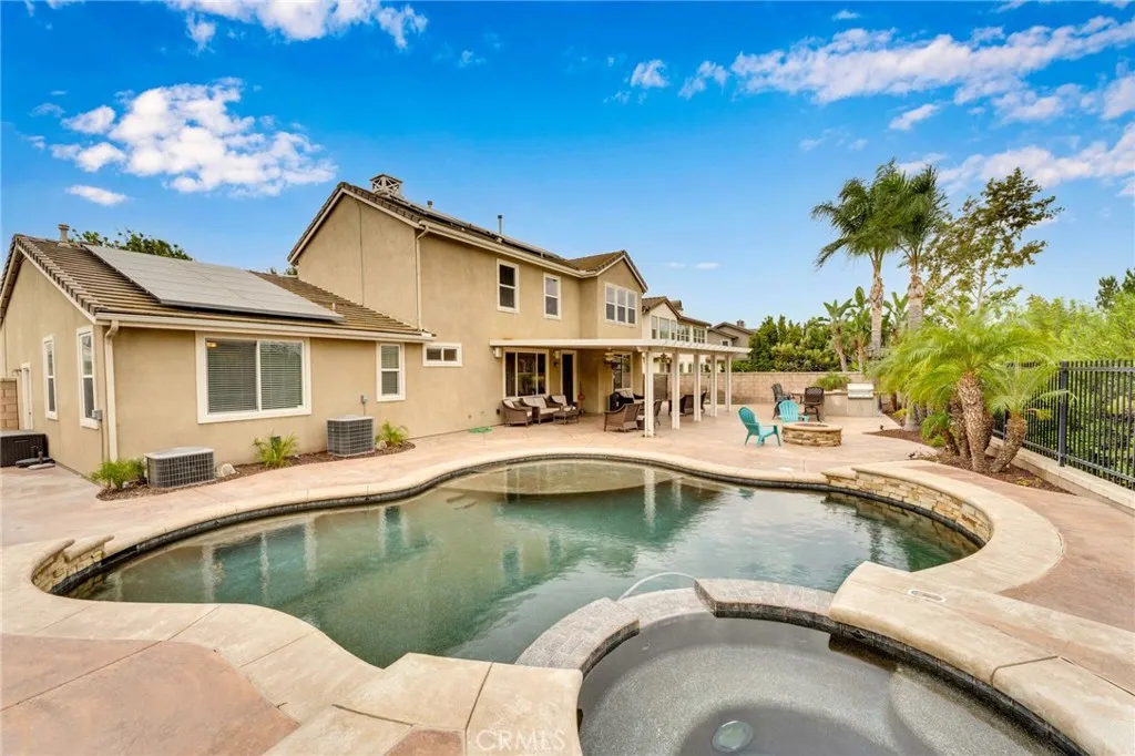 The backyard is a private retreat, featuring a dog run with access to the kitchen, a covered patio with a built-in grill and mini-fridge, and a saltwater pebble-tech pool — perfect for family gatherings and guests. The home has a Tesla solar system and can park up to 3 cars in the garage and driveway.