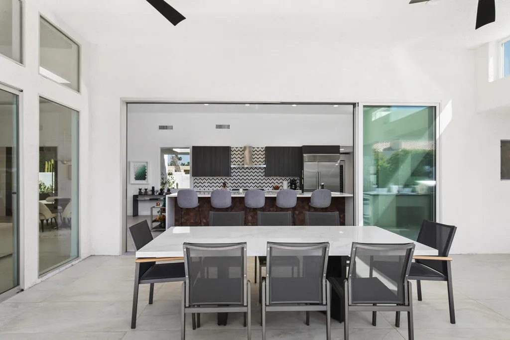 Available NOW! Turnkey- For Summer 2025 and Season 2026 Ready for you- ask for discount prices for the summer and multiple months.This remarkable contemporary luxury home, completely renovated, is nestled in one of Indian Wells’ most prestigious neighborhoods and is available for rent. Upon entry, you’re greeted by an impressive all-glass center pivot architectural door, setting the stage for an exceptional desert living experience. Inside, the spacious open floor plan features expansive dining areas, soaring 12-foot ceilings, a captivating ”Fire and Ice” fireplace, and stylish modern appointments throughout.Enjoy seamless indoor/outdoor living with an impressive 18-foot floor-to-ceiling pocket door and beautiful porcelain tile flooring both inside and out. The newly renovated gourmet Chef’s kitchen boasts modern cabinetry, quartz countertops, a Wolf double oven range, Sub Zero refrigerator/freezer, a chic glass-enclosed wine closet, and a separate walk-in pantry.Retreat to the luxurious Master Primary Suite overlooking the pool and stunning mountain views, complete with a spa-like bath and expansive walk-in closet for ultimate comfort and relaxation. Outside, the private outdoor living space offers a resort-like experience for you and your guests, with a covered living/dining area, outdoor kitchen, PebbleTec pool and spa, Cabo style cabanas, a spacious firepit with lounge area, and a putting green. Prices vary on dates and length of stay!