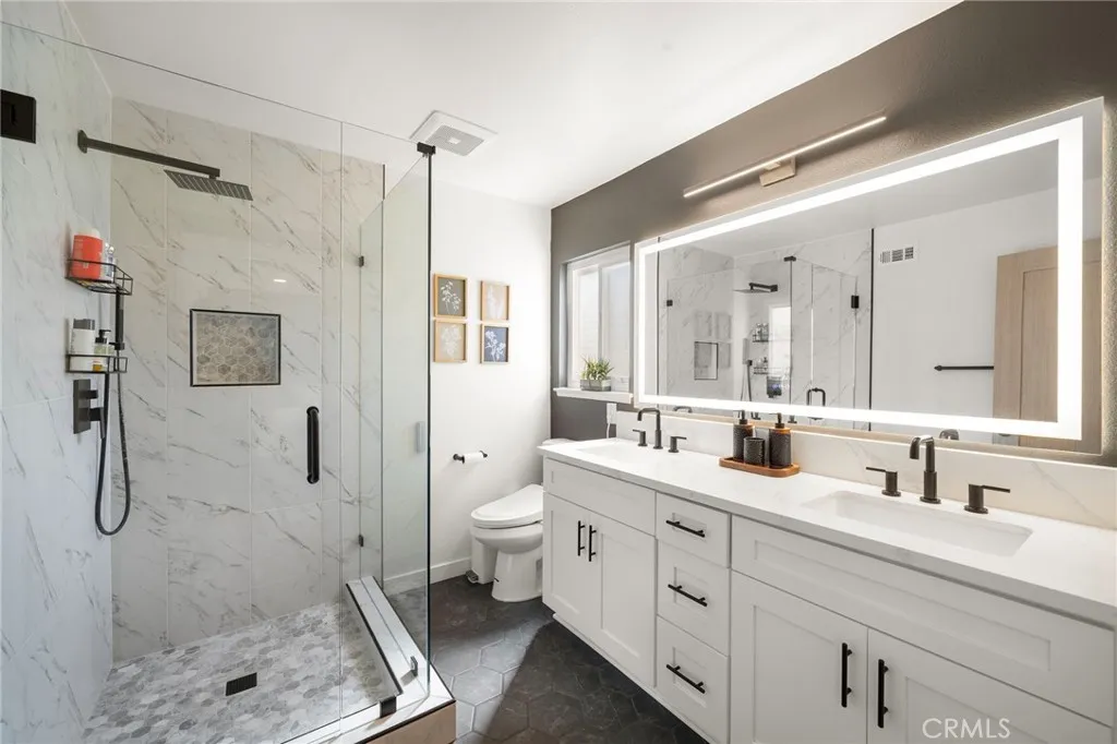 Seller has spent over $200,000 in upgrades. Absolutely stunning and completely reimagined with modern luxury finishes, this single-story home at the end of a cul-de-sac in the highly sought-after Dutch Haven America neighborhood near Huntington Harbor is designed to impress with its open-concept floorplan, new (2024) furnace and A/C system, luxury waterproof wood vinyl flooring, French-style dual pane windows, electronic-controlled window shades, recessed lighting, solid wood raised panel interior doors, and more. It boasts striking curb appeal with a custom garage door, extra-wide driveway, and lush landscaping. A flower-lined walkway leads to the custom entry door that opens to the elegant living room with slate fireplace pre-wired for TV. The living room flows seamlessly into a full-size formal dining room—originally the 5th bedroom—creating an open, flexible space for entertaining. The gorgeous remodeled chef’s kitchen is a modern masterpiece featuring quartz countertops, subway tile backsplash, breakfast bar with quartz waterfall and pendant lights, professional-grade stainless appliances (Thor gas range with pot-filler faucet, Thermador vent/hood, Bosch dishwasher, Sharp under-counter microwave), plus an extra deep Blanco sink with a Brizo Artesso faucet with smart-touch activation, and fine-finish custom cabinetry with under-cabinet lighting, pull-outs, spice organizers, and hidden trash. Spa-inspired bathrooms showcase chic designer tile, quartz countertops, Toto auto-temp-control toilet seats with washlets, touch-sensitive LED mirrors, and frameless clear-lass enclosures. The primary has dual sinks and an oversized walk-in shower with multi-head showers, while the guest bath has a tub/shower combo with rain, hand-held shower heads with thermostatic Kohler shower valve. The private backyard is a tranquil oasis with walls of foliage that provide added privacy while still allowing welcoming ocean breezes. It features a lush lawn, a bubbling above-ground spa, and a covered patio for year-round outdoor dining, entertaining, and relaxing. Additional upgrades include a 200 AMP panel, new Pex plumbing, Tesla universal charger, upgraded electrical rewiring, mirrored closets, ceiling fans, furnace relocated to the attic to create added closet space, and more. Ideally located near upscale Bella Terra shopping and dining, minutes to the beach, parks, and award-winning schools, this fabulous home truly has it all.