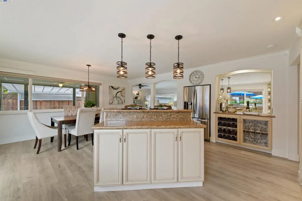 Pride of ownership shows in this sought after 3 bedroom, 2bath home in Livermore’s desirable Shadowbrook neighborhood. Freshly painted on the exterior and 90 percent of the interior, new manufactured wood floors the Family/living room offers fireplace with surround custom cabinetry with leaded glass doors and shelves for personal display items. The kitchen offers an open floor plan to host a large table, island with barstool seating, custom bar/coffee station area, a sliding glass door to an “Oasis” of a backyard with multiple sitting areas, in ground pool, outdoor kitchen area, covered gazebo area, endless entertaining opportunities, new sod, side yard for possible bocce court, she/he/kids sheds, garden area-whatever your vision may be and an in ground pool. The 10,308 square foot lot makes this location one can do many things with longterm. Livermore Valley schools are nearby, plenty of shopping, eateries, Downtown Livermore, Livermore Wine Country, ACE train, Sycamore Grove Park and Alden Lane Nursery are all easy access from the Shadowbrook Neighborhood.