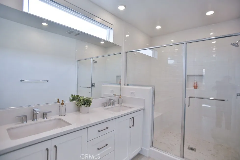 Upstairs, the primary suite is your personal sanctuary, with room for a seating area, a spa-inspired bath featuring dual vanities and a large step-in shower, and a custom-organized walk-in closet. Two secondary bedrooms share a designer bathroom with double sinks, bold hexagon tile floors, and a separate tub/shower.