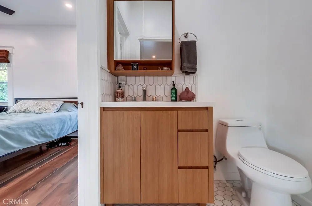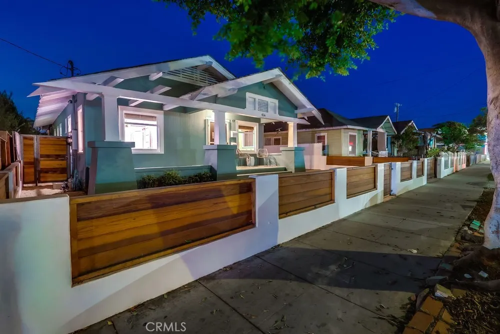 This early-century Craftsman home has been immaculately remodeled and features an accessory dwelling unit (ADU), perfectly situated in the heart of the vibrant “Retro-Row.”The home showcases the timeless appeal of Craftsman style with its classic pitched roof, original hardwood floors, unique archways, and double-hanging windows. Upon arrival, the inviting red door and covered front porch set the tone for relaxation—ideal for a porch swing and a morning cup of coffee. Inside, a rustic brick fireplace welcomes you, complemented by abundant natural light streaming through multiple windows. The custom archway leads to a formal dining room, which connects to the kitchen, a cozy breakfast nook, and an additional family room. Both bedrooms are generously sized, with the master suite featuring an expansive walk-in closet to accommodate your storage needs. The long driveway easily accommodates parking for at least four vehicles, ensuring ample space for residents and guests alike. Out back, you’ll find a beautifully landscaped yard perfect for entertaining or relaxing in privacy. Well-manicured lawn and patio space are ideal for barbecues or quiet evenings under the stars. Newly built one-bedroom ADU with dedicated kitchen area provide luxury living or rental income with nicely appointed fit and finishes.