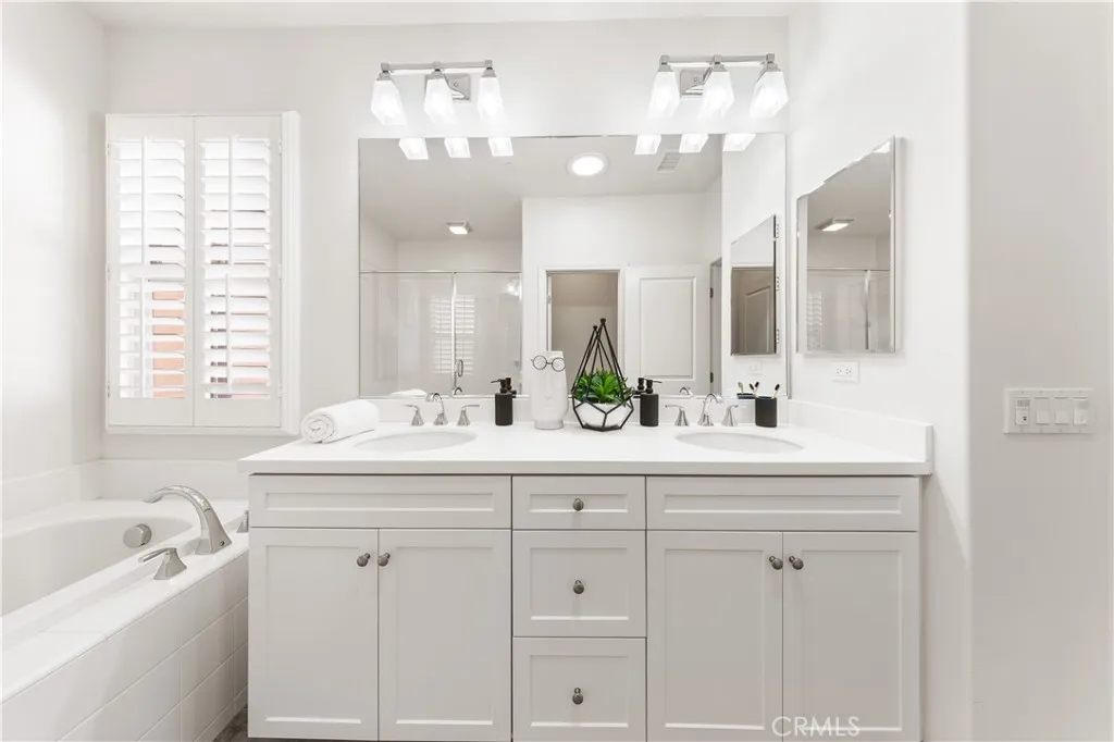 Welcome to 54 Jade Flower in Cypress Village — a beautifully designed 3-bedroom, 3-bathroom home offering 1,619 sq. ft. of modern living in the desirable Caserta community. This open-concept floor plan features a spacious living area that flows seamlessly into the contemporary kitchen, creating the perfect space for gatherings and entertaining. A highly sought-after main floor bedroom and full bath provides flexibility for guests or a home office. Upstairs, two additional bedrooms each feature their own ensuite bathroom, along with a convenient laundry room. The primary suite includes a relaxing bathtub and abundant natural light. Upgrades include new laminate flooring and plantation shutters throughout, enhancing both style and functionality. The home also offers an enclosed patio with additional storage and a two-car garage. Residents of Cypress village enjoy access to resort-style amenities, including sparkling pools, spa, lush parks, and scenic walking trails. Located within the boundaries of award-winning Cypress Village Elementary, Jeffrey Trail Middle, and Irvine High School, this home also provides easy access to freeways, toll roads, shopping, and dining.