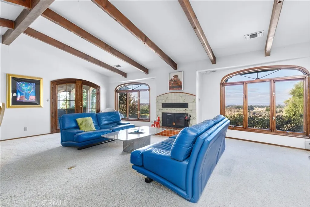 Nestled in Paso Robles wine country this 2972 sqft. home sits on over 9.5 acres with 5 acres of planted cabernet sauvignon vines. Enter the property on a paved driveway that take you to the top of the hill where the home is located with panoramic views. This Spanish style single level home has 2 living areas with windows that look over the vineyard and rolling hills of the countryside. The spacious kitchen boast a Sub-Zero refrigerator, island with cooktop, breakfast bar, dining area, and double glass doors that lead to the back courtyard. All bedrooms are on the same side of the house with the primary bedroom at the end. The first bedroom has a private entrance to the hallway bathroom. The second bedroom has a murphy bed. The primary bedroom and ensuite has a separate shower, soaking tub, and walk-in closet. On the other side of the house you will find the laundry room, third bathroom, and two double car garages. This property also has 2 outdoor living spaces. The front wrap around covered patio with view of your vineyard and the large back courtyard with 3 walls that break the wind. There is one well on this property for both the residence and vineyard use. Surrounded by wineries and located only 20 minutes from downtown Paso Robles and 15 minutes from downtown Atascadero you can live in the country with the conveniences of small town life.