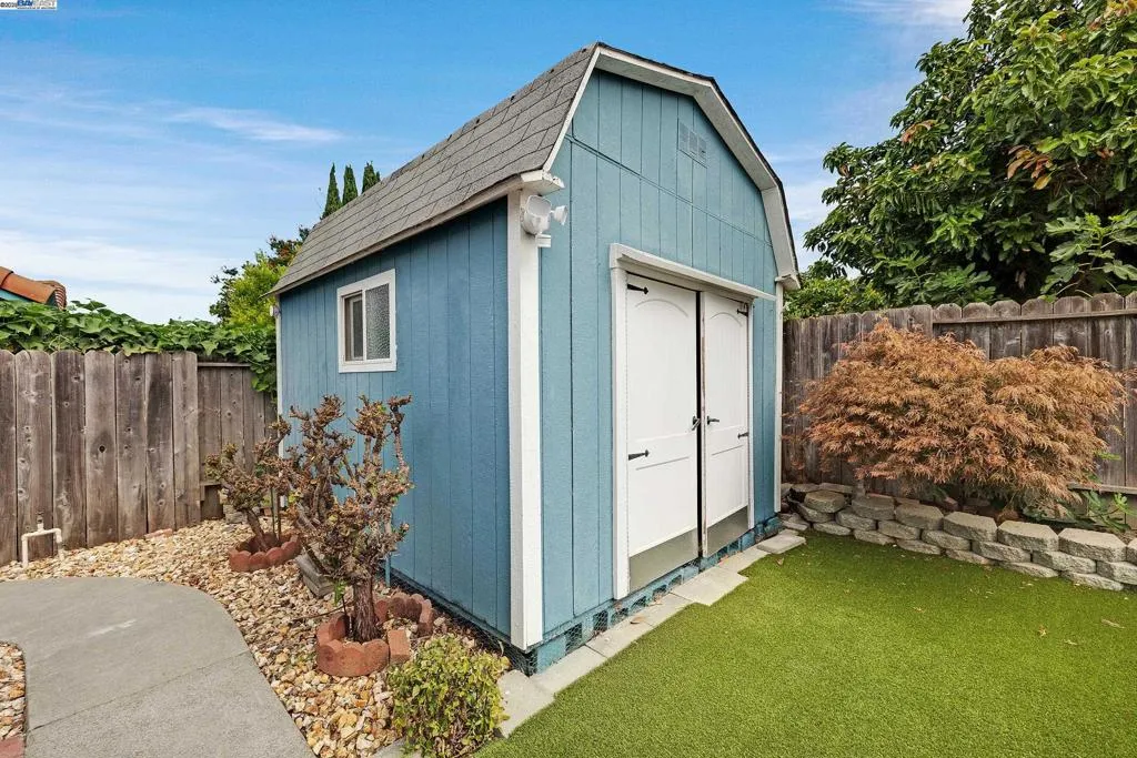 Beautifully updated 4 br. 2 ba. home. Price reduced $150,000 below recent appraisal. Freshly painted bedrooms and baths. Primary bedroom with attached bath and slider to private rear patio, perfect for a hot tub. Remodeled kitchen with white cabinets, stunning black, grey & white granite countertops. Flooded with natural light from the dining area skytube. SS Appliances all stay including the refrigerator. New garbage disposal. Dramatic livingroom with vaulted ceilings, skytube and freplace. Newer laminate wood flooring in livingroom and bedrooms and wood look tile in entry, dining area and kitchen. New furnace & water heater 2025. Roof clearance. Covered outdoor living area accessed from the dining/kitchen area slider. Enjoy the Large and low maintenance rear yard with 2 areas for entertaining, artificial grass, large storage shed and side yard with gate. Truly a wonderful family home. Pioneer Elementary, Itliong-Vera Cruz JHS and Logan High School. E_Z commute location close to 880, Dumbarton & BART. Shopping and parks nearby. Open House Sun. Nov 15 from 12-3 pm
