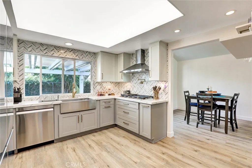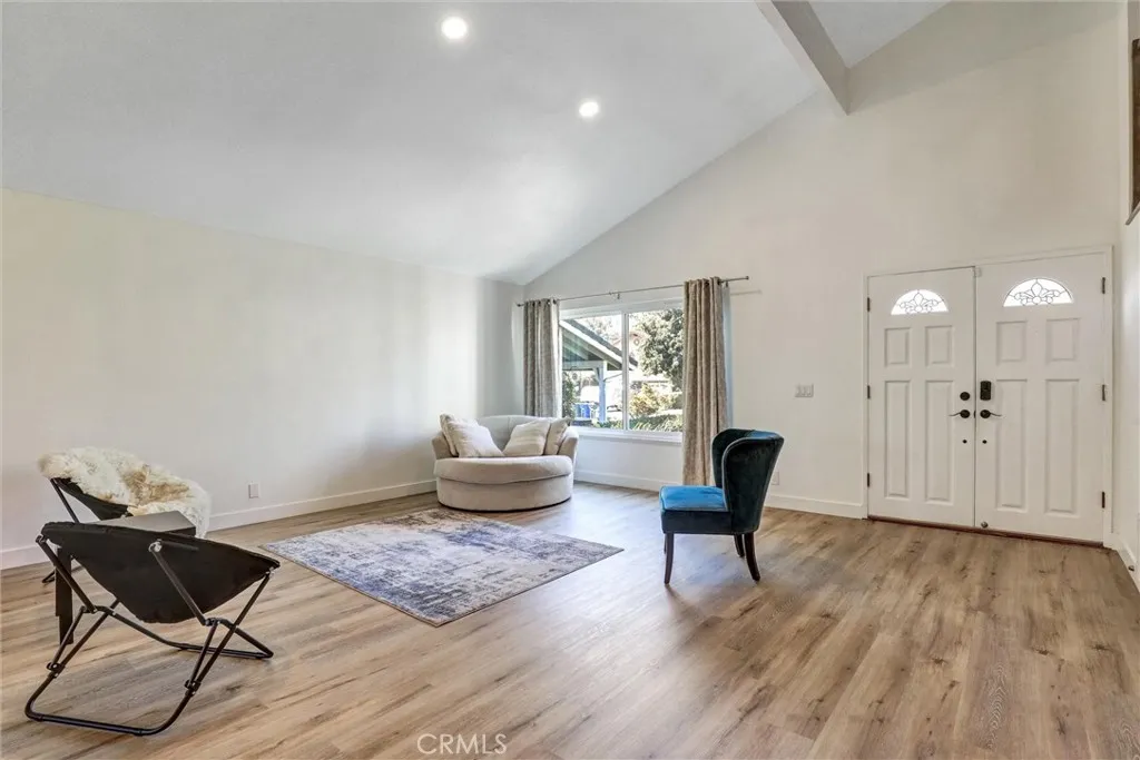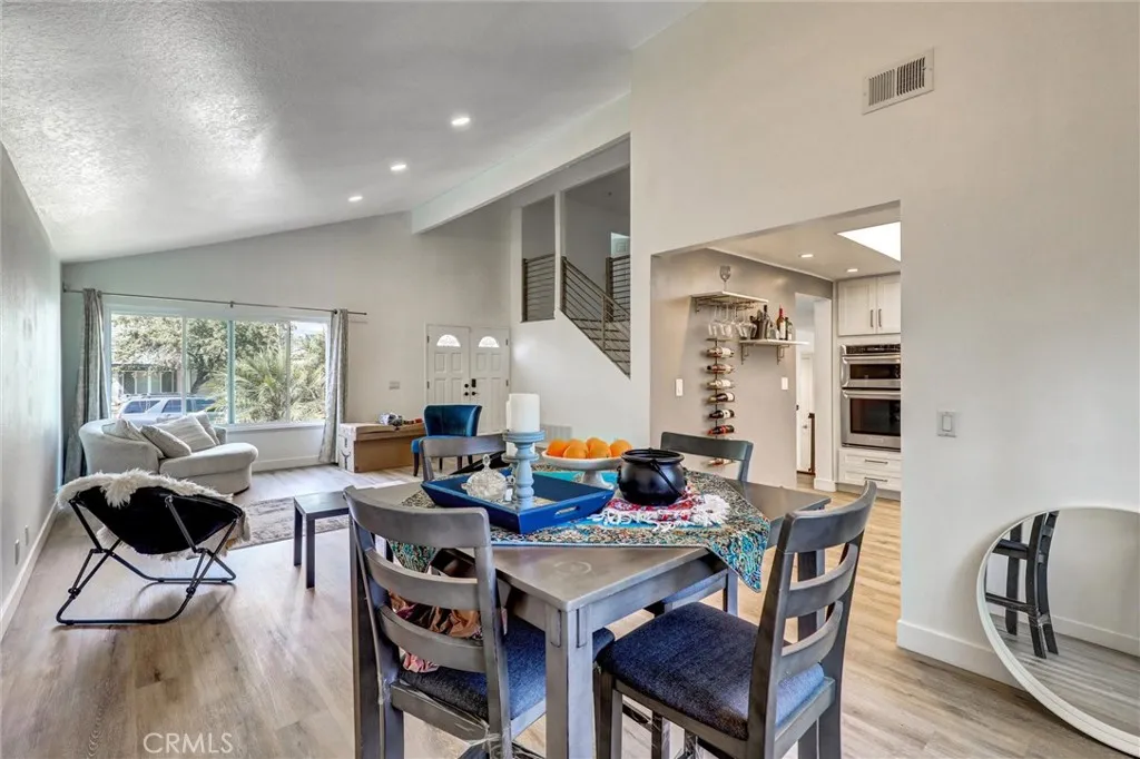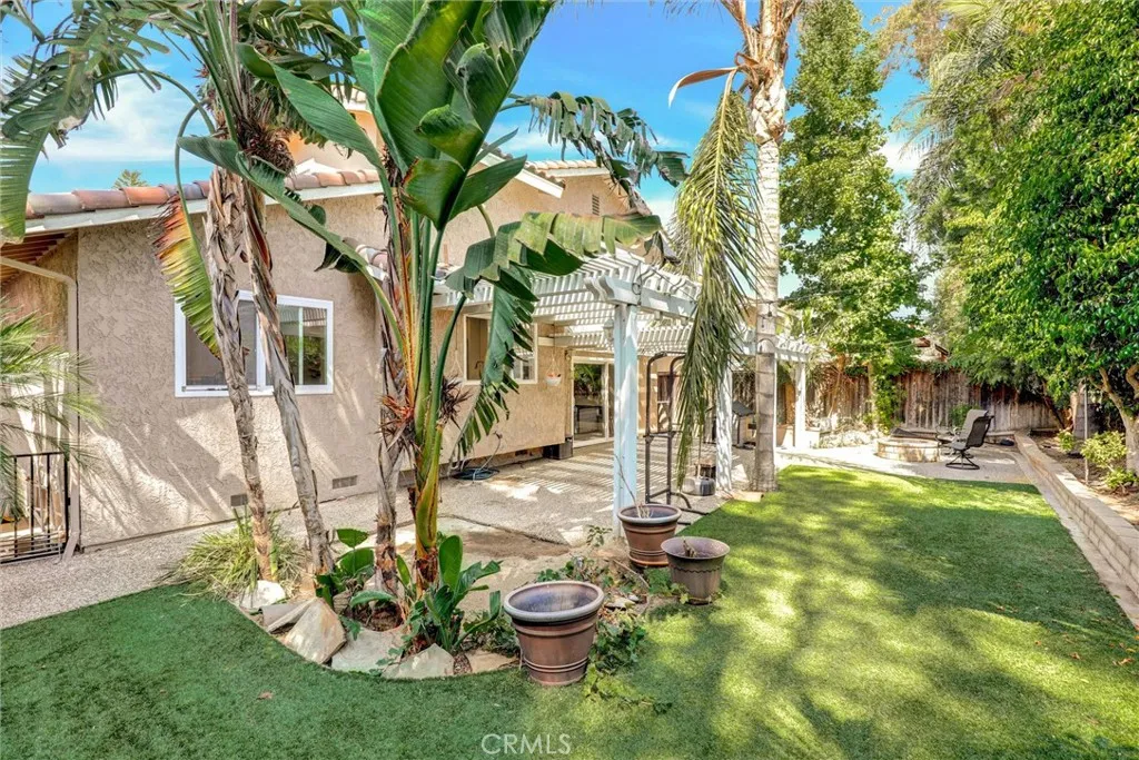 Must See – Located on a cul-de-sac in the Serrano Park community, this 4-bedroom, 3-bath, two-story home was remodeled in 2023 including the kitchen, flooring, plumbing, and electrical, and is move-in ready. The main level features a double-door entry, vaulted ceilings in the living and dining area, and a remodeled kitchen with quartz counters, gas stovetop with pot filler, and stainless-steel appliances (2023). Additional upgrades include a roof replacement in 2021, dual-paned windows, Nest thermostat, artificial turf in the front and back, updated furnace and refurbished AC approximately eight years ago, recessed lighting, insulated garage door with updated Wi-Fi motor, and leased solar panels to be assumed by the buyer. The first floor also includes a bedroom and full bath with shower, while the upstairs bathrooms come with lighted anti-fog mirrors, Bluetooth exhaust fans, and modern finishes. The backyard features turf and drought-friendly landscaping, a koi pond, Alumawood patio cover, paver firepit and conversation area, pebble tech slab, and raised planters. Serrano Park HOA amenities include two pools, four tennis courts, clubhouse, BBQ area, tot lot, and greenbelts with walking trails, with convenient access to nearby parks, shopping, dining, and schools.