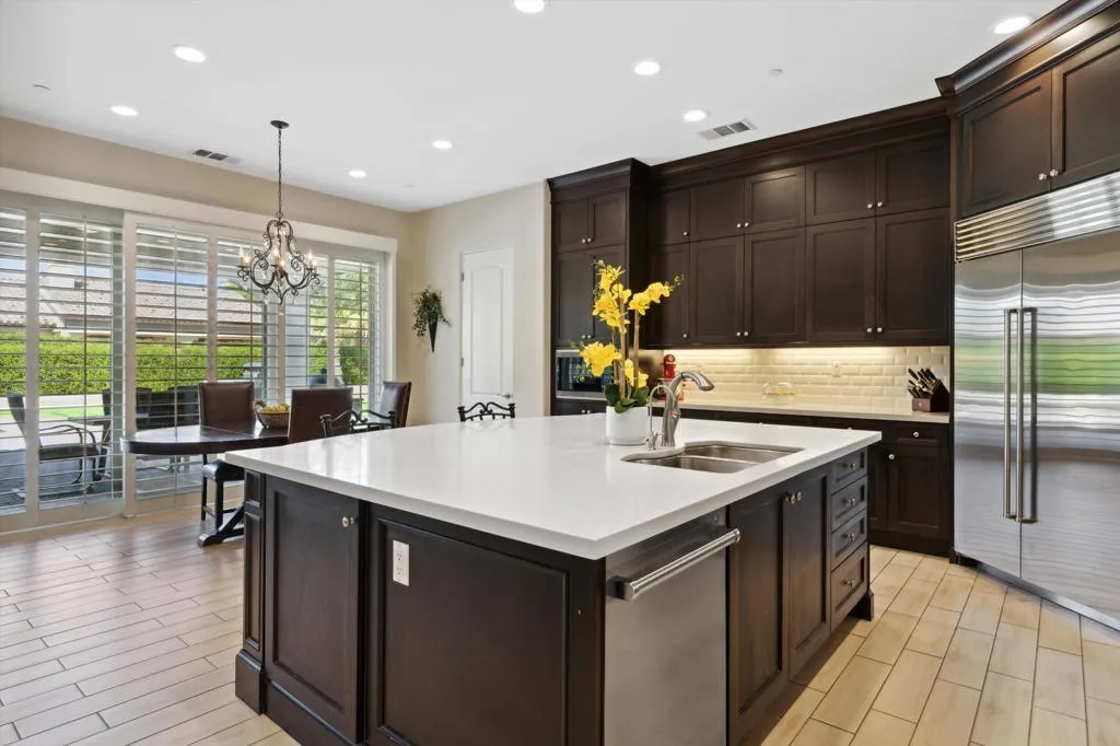 Located within the exclusive gated community of Stonefield Estates–home to just 25 estate properties–this stunning 3,405 sq. ft. residence offers bright, open living spaces with sophisticated contemporary finishes.Upon entry, you’re welcomed into a spacious great room featuring soaring ceilings with exposed real wood beams, a cozy fireplace, and built-in surround sound–perfect for relaxing or entertaining.The gourmet kitchen is a chef’s dream, showcasing abundant maple cabinetry, Caesarstone countertops, a large walk-in pantry, generous dining area, and an oversized island. The premium appliance package includes a Sub-Zero refrigerator, Wolf range with double ovens and vent hood, and an Asko dishwasher.The expansive Primary Suite is a true retreat, highlighted by coffered ceilings, crown molding, and a spa-inspired bathroom with dual vanities, a soaking tub, makeup vanity, and an enormous walk-in closet with custom built-ins.A spacious Junior Primary Suite is privately located on the opposite wing of the home, featuring its own luxurious bath with dual vanities and a walk-in closet. The third ensuite bedroom also includes a walk-in closet and private bathroom.Step outside to your private 1/2-acre resort-style backyard, complete with a saltwater Pebble Tec pool, raised spa with waterfall feature, covered patio, built-in BBQ, custom lighting, and plenty of space to entertain.Additional features include:Versatile flex space (currently used as a formal dining area)Porcelain tile flooring throughoutSoft water systemPlantation shutters3-car garage with epoxy flooringAll located just minutes from the Empire Polo Grounds–home to the world-renowned Coachella and Stagecoach music festivals.Call today to schedule your private showing!