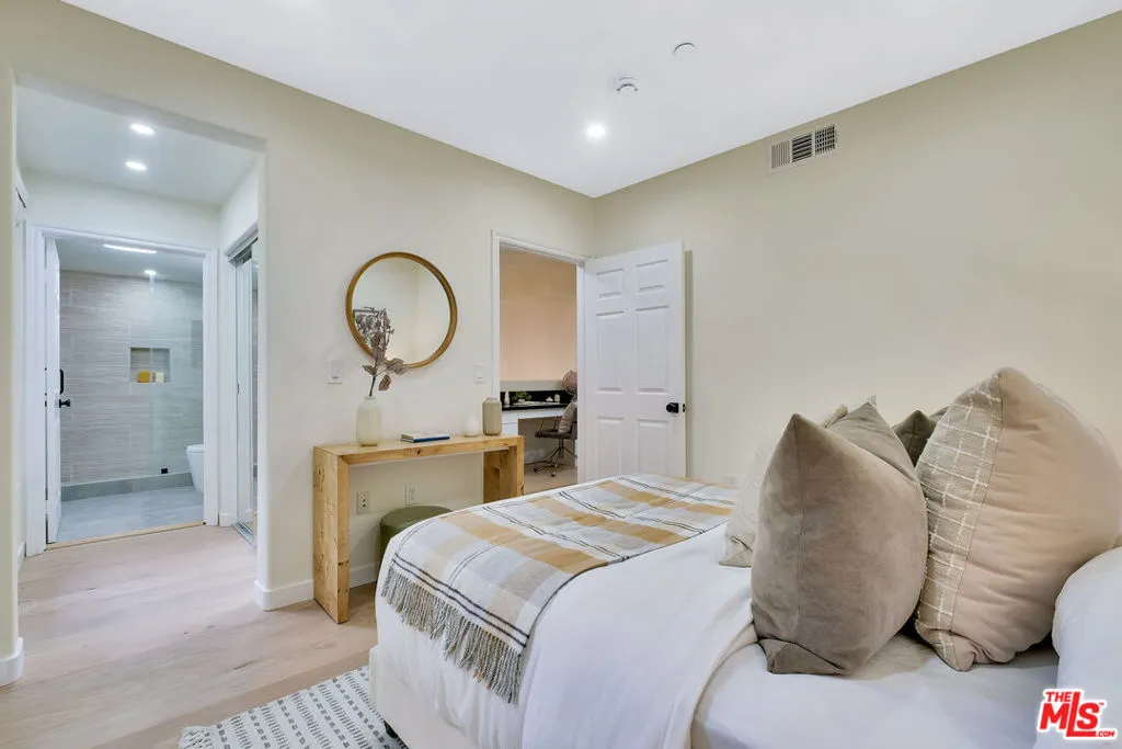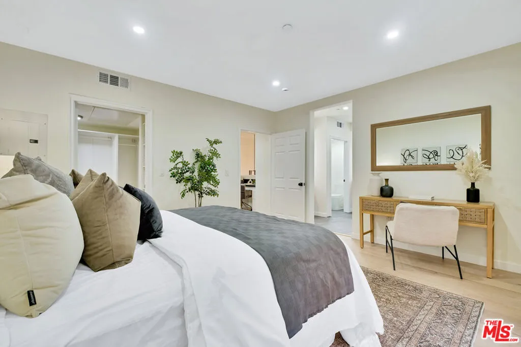 Stunning and meticulously renovated 2-bedroom, 2.5-bath townhouse-style condo located in the highly sought-after Paraiso complex within Phase 1 of Playa Vista. This light-filled home features a fully updated kitchen with refinished cabinets, quartz countertops, bar seating, a cozy breakfast nook, and all new high-grade appliances and fixtures. The kitchen opens seamlessly to the spacious living room, which boasts soaring ceilings, LED recessed lighting, a custom built-in entertainment center, and direct access to a private outdoor space. The dining area is conveniently located just off the kitchen and adjacent to a modern powder room. Upstairs, you’ll find two ensuite bedrooms and a built-in office nook with a custom deskperfect for remote work or study. The luxurious primary suite offers a private balcony, a walk-in closet, and a spa-like bathroom featuring a freestanding soaking tub, a new beautifully tiled shower with a seamless glass enclosure, and designer fixtures. The second ensuite bedroom includes an oversized shower and a newly updated vanity. Additional highlights include central heating and air conditioning, new hardwood flooring throughout, energy-efficient LED recessed lighting, a brand-new side-by-side washer and dryer, and fresh interior paint. Ideally located near parks, the CenterPointe Club, restaurants, and all the amenities of Playa Vista Phase 2, this turnkey home offers the perfect combination of comfort, style, and convenience.