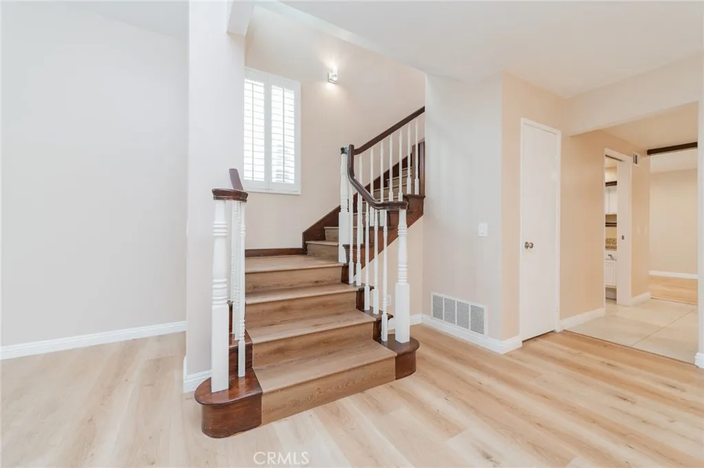 New upgraded single family detached home with 3 bedroom, 2.5 bath is in the highly sought Irvine School District. The front courtyard is private and invites you into the Formal Living & Dining area with plantation shutters. New interior painting and new wood flooring through out all the property. The updated kitchen remodel consists of Granite counters, counter for dining, newer tile flooring, recessed lighting, new painted cabinets and stainless steel Maytag appliances. The family room off the kitchen extends the living to the outdoor brick laid patio. The Master bedroom is spacious & bright, All of the bathrooms have newer granite counters & newer ceramic tile floors. Brick patio and Spanish tile roof. The property closes the access to the community pool. The convenient location, excellent schools, low HOA dues and NO Mello-Roos offer you the ideal home! You won’t want to miss this opportunity!