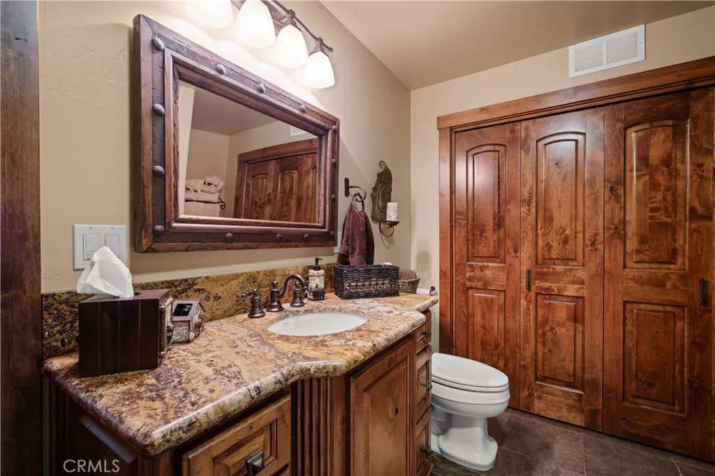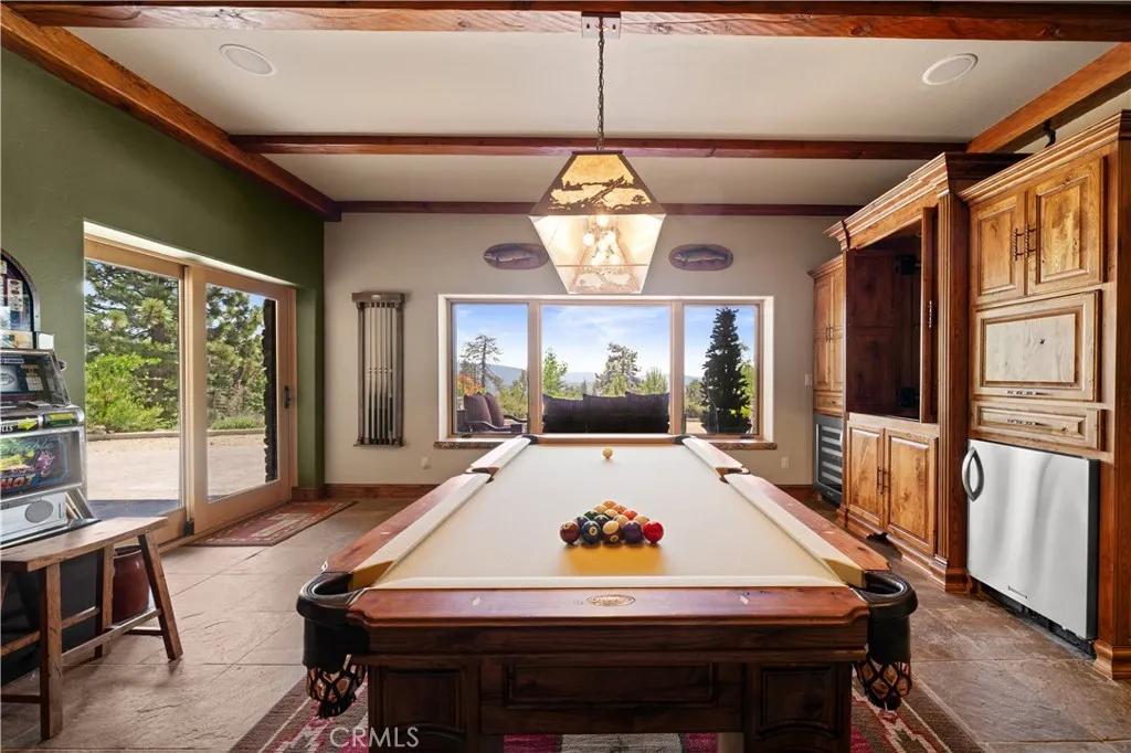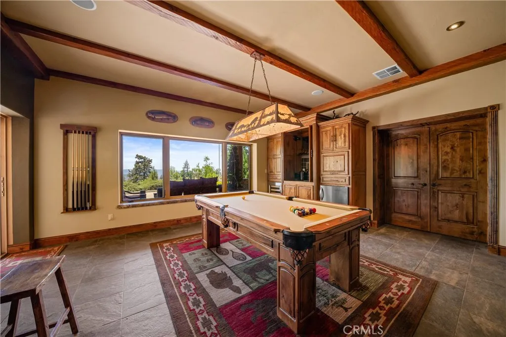 Lower Level: Two additional bedrooms (one with built in bunk beds), a full bathroom, laundry closet with side by side washer/dryer, a game room with wet bar (copper sink, beverage fridge, cigar rack) plus a dedicated theater room with motorized screen and media center.