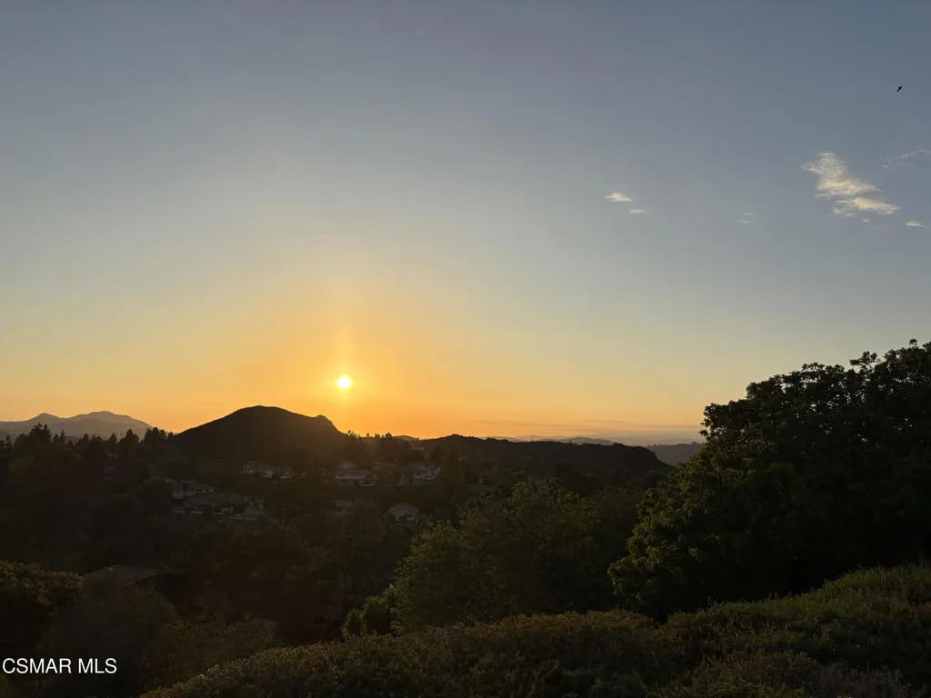 Stunning East Hill View Home! Located in the highly desirable East Hill neighborhood of Thousand Oaks, this expansive 4-bedroom, 3-bath home with a large bonus room offers exceptional privacy, breathtaking views, pool and spa, and the largest floorplan in the community. Situated on a spacious corner lot with a gated entry, this property combines elegance, space, and functionality.Upon entry, you are welcomed by soaring ceilings and an abundance of natural light streaming through floor-to-ceiling windows. The open-concept layout includes a generous living and dining area that overlooks the sparkling pool and panoramic mountain views–ideal for entertaining or relaxing in a serene setting. The gourmet kitchen features granite countertops, a built-in oven, convection microwave, Thermador stovetop with warming lights, and a sunny breakfast area. Adjacent is the spacious family room that flows effortlessly for daily living.Upstairs, the primary suite boasts unobstructed views, an ensuite bath, and a walk-in closet with convenient attic storage. Two additional upstairs bedrooms share the floor with a versatile oversized bonus room–perfect for conversion into two extra bedrooms, a home theater, or even an additional primary suite. Downstairs, you will find a 4th bedroom currently used as an office, easily converted back by adding a closet. Additional features include engineered hardwood flooring throughout the main level, separate laundry room, large storage pantry, large storage area under staircase, 3-car garage, and a new pool/spa heater makes this home truly sensational! Watch stunning sunsets from the serene backyard or your private bedroom retreat–this home truly offers it all!The community has paseo paths, picnic and BBQ area. Close to award-winning schools, scenic parks, hiking trails, Sunset Hills Golf and Country Club.
