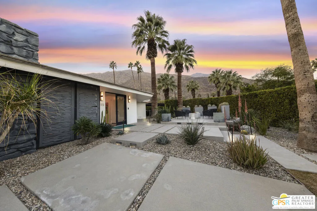 Welcome to 215 W Camino Alturas, originally built in 1961this beautifully updated residence is located in the highly desirable Mesa neighborhood of Palm Springs. This stylish home seamlessly combines modern luxury with desert charm, offering a sophisticated and comfortable living experience. Just minutes from downtown Palm Springs, renowned golf courses, and the best in dining and shopping, this home provides the perfect base for enjoying everything the desert has to offer. Upon arrival, you’ll be greeted by a private, gated entry and an inviting front yard with a fire pit and meticulously landscaped for both beauty and privacy. Inside, the open-concept floor plan features soaring ceilings, an abundance of natural light, and sleek finishes throughout. The chef’s kitchen is a true standout, complete with contemporary countertops, custom cabinetry, and high-end appliances ideal for preparing delicious meals and entertaining guests. The spacious living and dining areas flow effortlessly into one another, providing ample room for both relaxation and hosting gatherings. Large sliding glass doors open to the backyard, where you’ll find a tranquil outdoor space with a sparkling pool and plenty of room for lounging and outdoor dining. The stunning mountain views create a serene backdrop for the perfect desert retreat. This home features two generously sized bedrooms and a versatile den, which can easily serve as a home office, art studio, or additional living space. The luxurious primary suite offers a walk-in closet and a beautifully appointed bathroom. Additional features include polished concrete floors, modern lighting, and an outdoor shower after pool time! Whether you’re seeking a primary residence, a vacation getaway, or an investment property, 215 W Camino Alturas delivers the ultimate Palm Springs lifestyle. Don’t miss the opportunity to make this exceptional home yours!