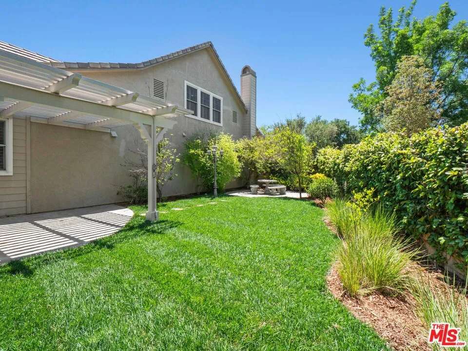 Breathtaking Gated Westridge Home with 4 Bedrooms, 2.5 Baths, Loft that is currently a billiards room, Downstairs Luxurious Primary Suite, a 3-Car Garage, and No Mello-Roos Taxes! This beautifully maintained home features exceptional curb appeal, an inviting front porch, and a spacious, light-filled floor plan. Step into the formal living room adorned with a charming stone fireplace and decorative glass accents, flowing into a generous formal dining area with built-in storage and a butler’s pantry. The family room boasts soaring windows and opens to the chef’s center island kitchen, complete with abundant counter space, built-in Sub-Zero refrigerator, upgraded commercial-grade range, stainless steel appliances, and ample cabinetry. The luxurious primary suite offers a spa-inspired en-suite bathroom with dual vanities, a large jetted soaking tub, an upgraded glass-enclosed walk-in shower, and a massive walk-in closet with custom organizers. A guest powder room and a well-equipped laundry room with utility sink and additional storage complete the first level. Upstairs, the grand staircase leads to a spacious loft currently used as a billiard’s room and three additional bedrooms, two share a well-appointed Jack-and-Jill bathroom with dual sinks. Step outside to enjoy the lushly landscaped yard, featuring a large grassy area, covered pergola patio, and built-in cooking station which is perfect for entertaining. Located in a gated community of luxurious homes, residents enjoy access to resort-style amenities including a clubhouse, two swimming pools, tennis courts, sports courts and in close proximity to award-winning schools (Oak Hills Elementary, Rancho Pico Junior High, and West Ranch High School). Centrally located minutes from freeway, shopping and restaurants. Don’t miss the opportunity to own this exceptional home in one of Westridge’s most desirable communities!