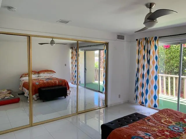 This is a one of a kind smaller building in a coveted downtown location. This unit is light and bright and retains a great deal of its original charm. Windows and sliders have been replaced to enjoy that amazing western view. While we list this as a 2BR and assessor records has it as a 2BR, the second bedroom does not have a door or closet but is the perfect home office or den. From the entry patio, you get the feeling that this is Palm Springs with a breathtaking mountain view. The living room is large and has a fireplace, dry bar, dining area and breakfast bar. The kitchen is bright and large and can accommodate a table and chairs or a work table. Off the kitchen is a balcony, perfect for outdoor entertaining. The primary is large and has balcony access, plenty of closets and an en suite bath. The second BR/den is large and bright as well. There is a hall bath with shower/tub and original tile counter top on the vanity. The washer and dryer are in unit and the secured garage has one assigned parking spot and a storage room. Prospective renters and their agent to verify any / all information.