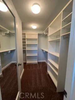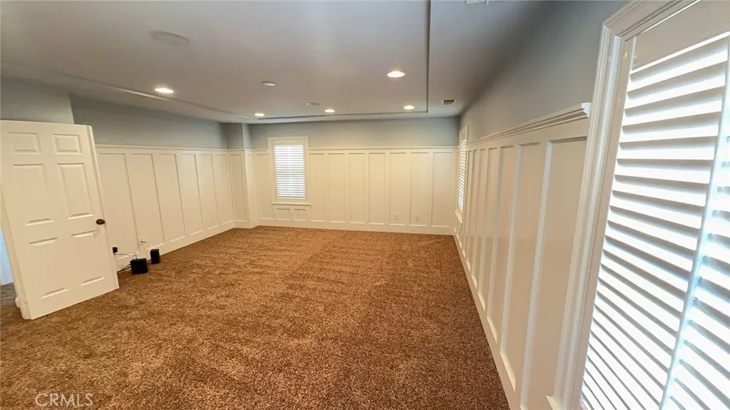 • Expansive primary bedroom with tray ceiling, wainscoting, and walk-in closet