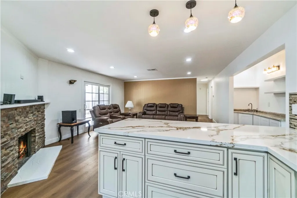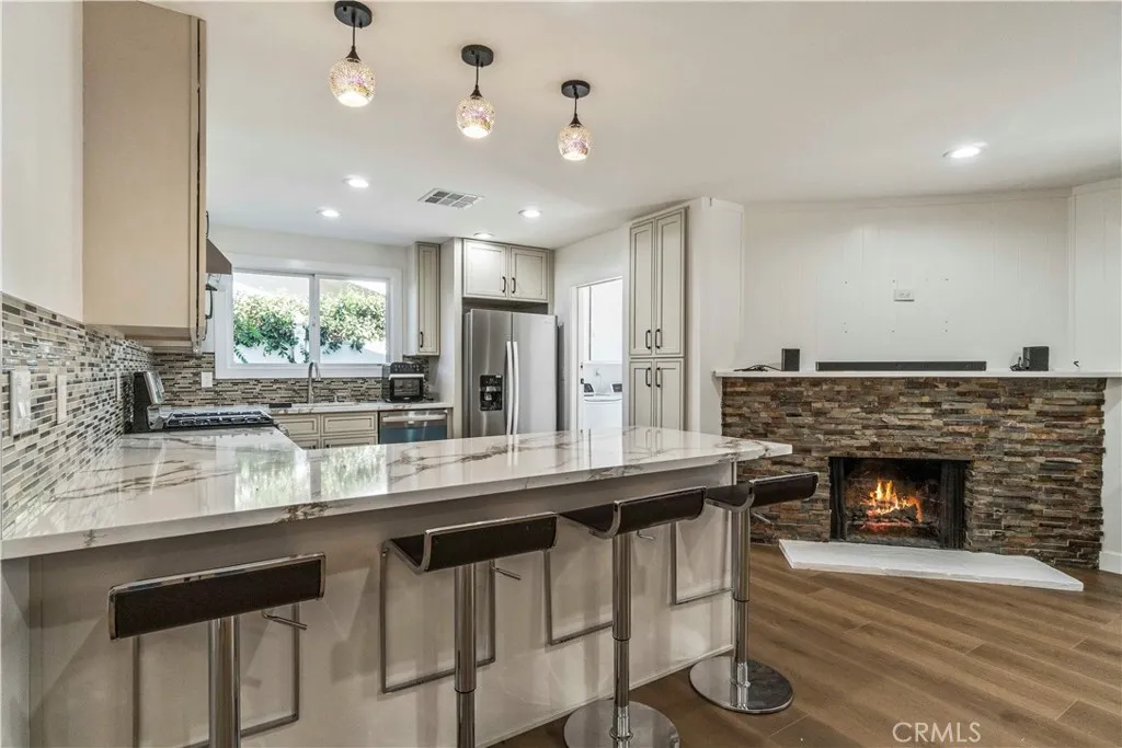 Welcome to the heart of West Hills! This tranquil and safe neighborhood is adorned with tree-lined streets and offers beautiful views of nature, the neighborhood, and city lights. This spacious home features an open floor plan with over 2,000 sqft, including a large living room and family room with new engineered hardwood floors and a wet bar. The custom kitchen boasts quartz countertops, custom cabinets, and brand-new stainless-steel appliances, including a range oven, dishwasher, and refrigerator. Newly installed highly efficient solar panels, Energy-saving LED recessed ceiling lights, tankless water heater, and newer energy-efficient windows and sliding doors. The family room features a cozy gas/wood-burning fireplace and leads to four spacious bedrooms and three beautifully remodeled bathrooms, providing ample space for luxurious living. The open layout connects the living room, family room, and kitchen, creating an inviting atmosphere for relaxation and entertainment, complemented by an inside laundry room. The garage has been converted into an ADU, serving as a potential fourth bedroom with its own attached bath, or as a studio or guest unit with a separate entrance perfect for extended family or rental income. The expansive backyard offers a serene retreat amidst nature, and a private covered patio is ideal for barbecuing, entertaining, or children’s play. There is a recreation room, in the backyard, which is ideal for a your private GYM, game room, study room, additional guest room, for meditation, children’s play room, changing room after swimming, and or just for relaxing etc. With plenty of street parking for guests, this home is conveniently located near grocery stores, shopping centers, fine dining, public transportation, Topanga Village (less than 10 minutes away), the 101 & 118 Freeways, and award-winning schools. Discover the perfect blend of comfort and convenience!