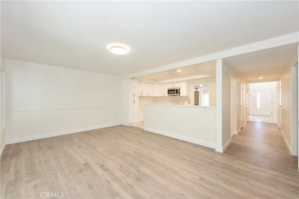As you step inside, you’re greeted by vaulted ceilings and an abundance of natural light that fills the open-concept living and dining areas. The newly installed wide-plank luxury flooring adds warmth and continuity throughout, while recessed lighting and designer chandeliers elevate the ambiance.