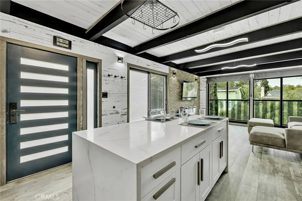 Prime Woodland Hills location! Incredible Duplex, with 2 bedrooms, 1 bathroom and kitchen on the first floor and 2 bedrooms, 1 bathroom and kitchen on the second floor, plus incredible roof top and 2 patios! The total size of the house is 1,347 sf. Lovely drought friendly landscape greets & welcomes you to a brick hardscape driveway! Enter the designer front door of luxury & WOW factor will behold you! Wooden Floors & Sparkling Marble tile have been recently added and is ‘top-of-the-line’! COOL kitchen features Stainless Steel Appliances & a chef’s delight of a sink with a spray function that will ease cleaning dishes prior to the new S/S dishwasher! Tons of storage in the center island that can be used as well for dining or coffee get-together! A true gathering spot of the home! The gourmet chef will truly relish this kitchen! Recessed lighting throughout! Living room has walls of glass & fireplace that is designer perfect. New windows! Wall-to-wall sliding glass doors that lead to the most delicious patio! Step up to sit under a shade tree or enjoy the lovely ambiance of the fountain! Quiet! Peaceful & Zen-like serenity! Side patio area is great for relaxing…or expanding your family get-together! Close to great schools! Ventura Boulevard! Easy Freeway access!