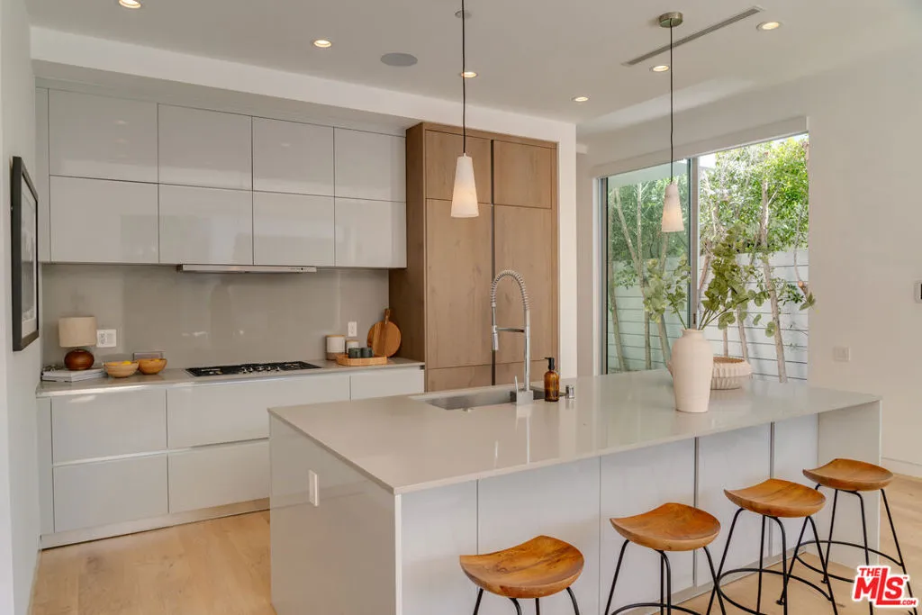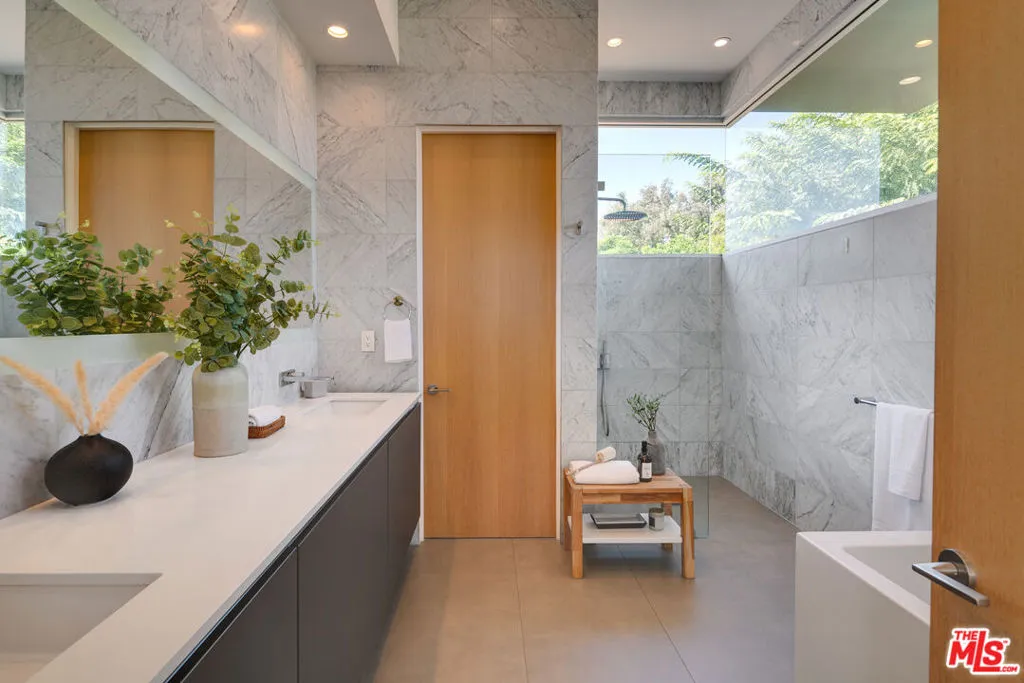 Welcome to 419 Westbourne Dr, a luxurious Organic Modern retreat nestled on a serene Cul De Sac street adjacent to Beverly Hills. This sprawling estate boasts one of the best lots and house in the area, offering unparalleled privacy and space. Impeccably designed with 11-foot ceilings throughout, this home features motorized shades in the living area and Fleetwood Pocket doors throughout, seamlessly blending indoor and outdoor living. Entertain guests with ease in the outdoor cabana, complete with a movie projector. Enjoy modern conveniences with a fully equipped alarm system, high-speed WiFi, and Crestron Smart Home System. Indulge in culinary delights with Miele appliances and a morning bar featuring a Miele Coffee machine in the primary bedroom. Relax in style with a Toto smart toilet in the primary bedroom and window window coverings throughout for added tranquility. Outdoor amenities include a BBQ area, zero-edge saltwater pool and spa, and a spacious grass area for both entertainment and children’s enjoyment. Additional features include Electric Car Charging, French white oak wood flooring and security cameras throughout. Experience the epitome of luxury living in this exquisite West Hollywood oasis.