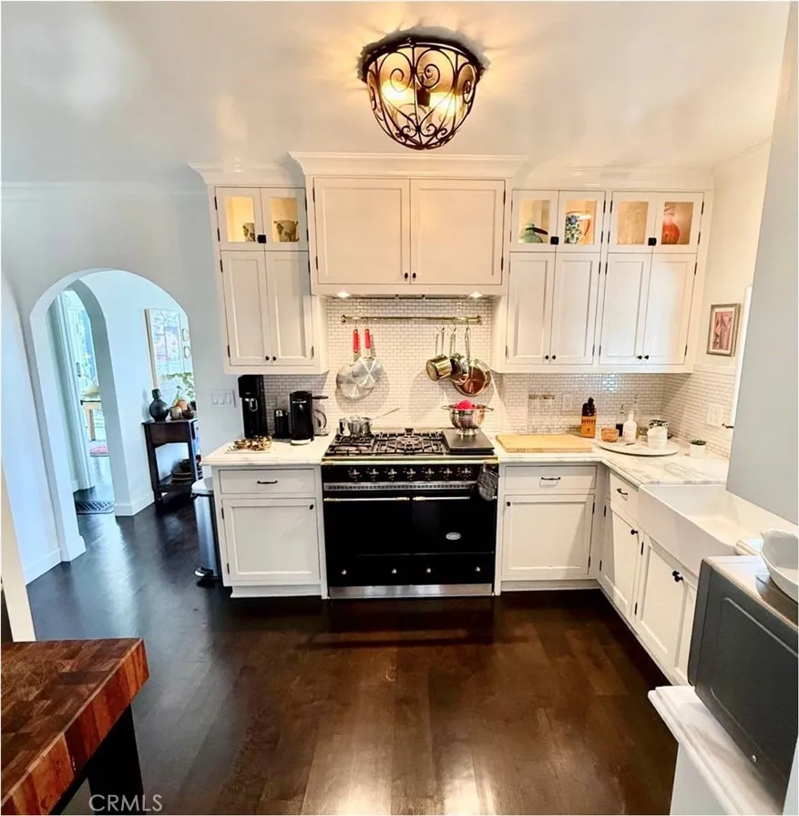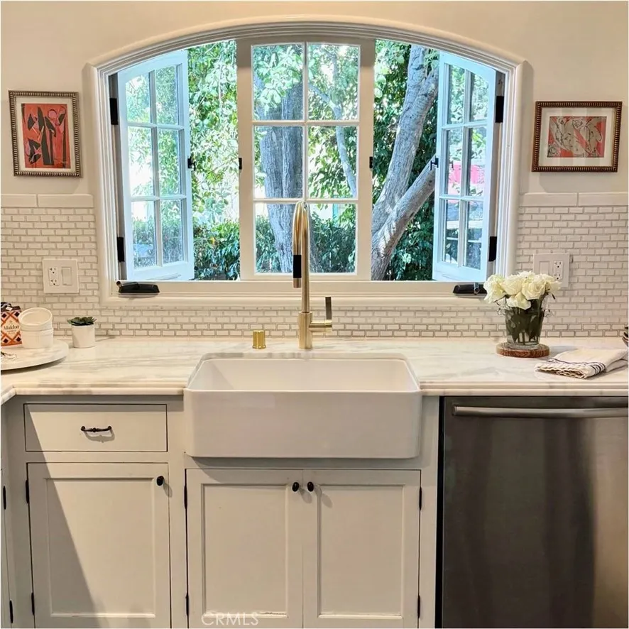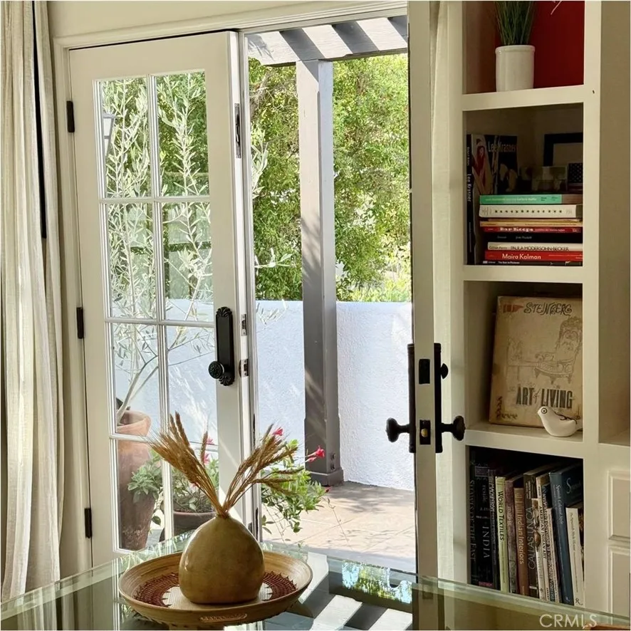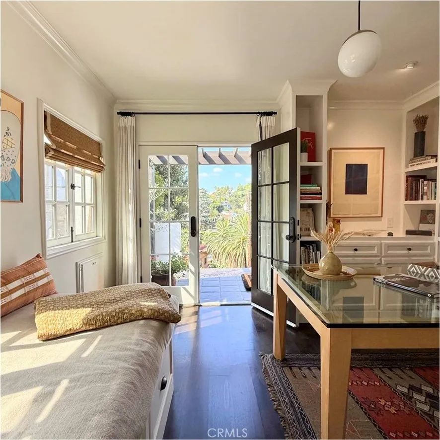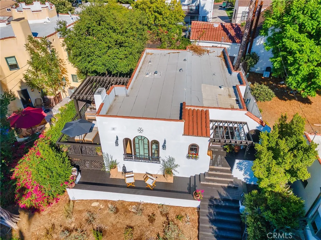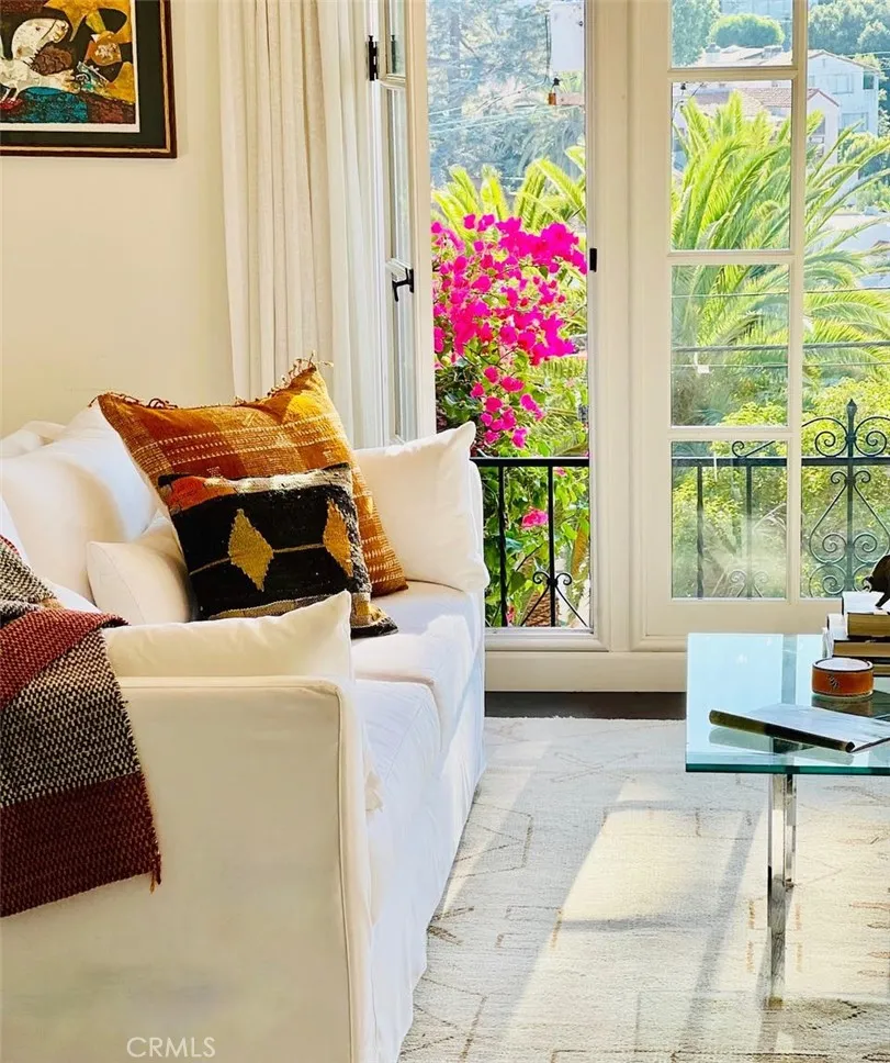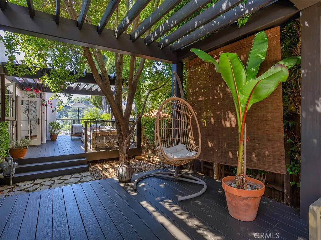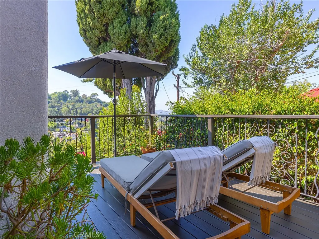 Inside, graceful archways frame the entries and hallways, while abundant French doors and Spanish-style windows bathe the interiors in natural light. Pure walnut floors add timeless richness underfoot, while original Wallace Neff lighting fixtures cast a warm, historic glow. Step outside to 600 square feet of wraparound decks with multiple spaces for entertaining or quiet retreat.