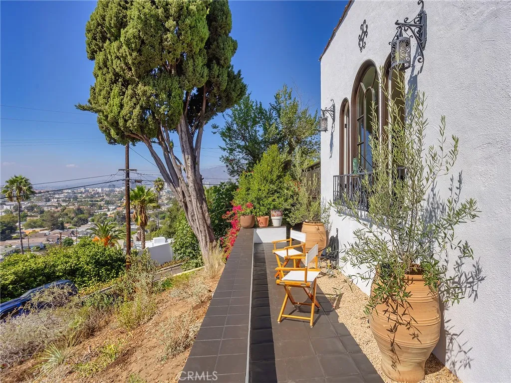 Drama begins with the wide staircase that leads to this masterfully cared-for beauty. As you ascend, breathtaking views open up- the Verdugo Hills, twinkling city lights, and distant mountains.