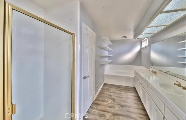 * Large MASTER SUITE featuring vaulted ceilings, skylights, multiple closets and attached bath with dual vanities, soaking tub and walk-in shower.