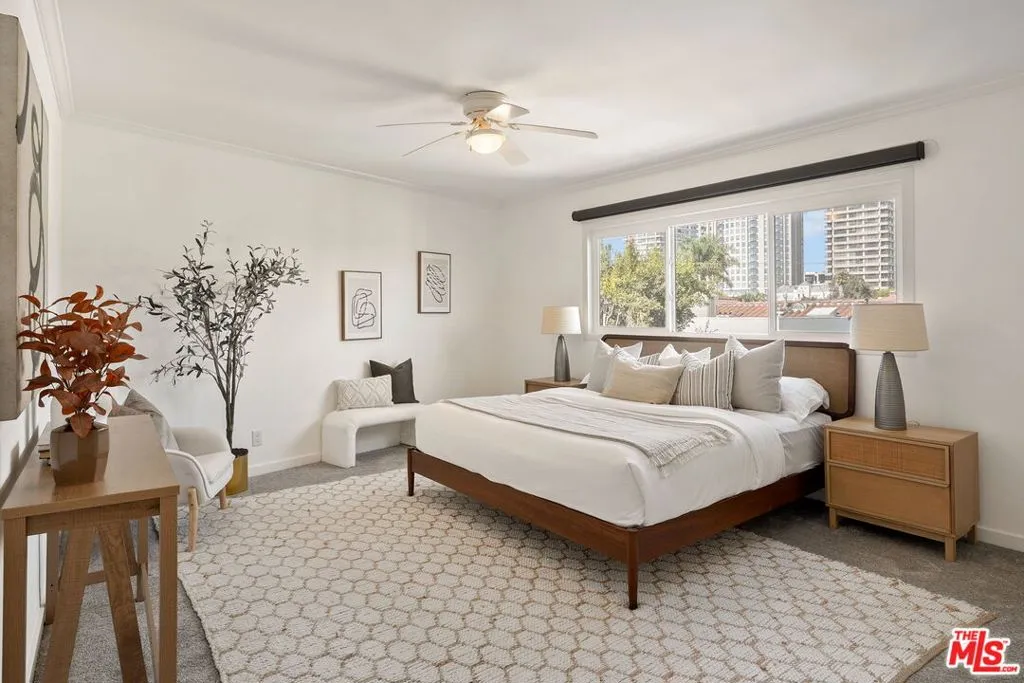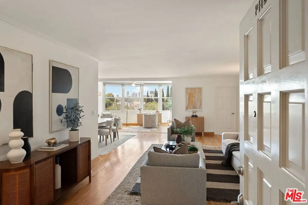 Rare sun-filled top floor penthouse in prime Westwood. This quiet, spacious 3-bedroom, 2-bathroom top floor unit offers a bright, sun-filled retreat in the heart of Los Angeles. The expansive open floor plan seamlessly connects the kitchen, dining, and living areas, creating the perfect space for both everyday living and entertaining. Beautiful wood floors flow throughout the main living spaces, and a dramatic wall of windows in the great room floods the home with natural light while showcasing lovely views of Los Angeles and the surrounding neighborhood. Clean kitchen with stainless appliances and new cook-top stove. The luxurious primary suite features a spa-like remodeled bathroom and generous closet space, while two additional spacious bedrooms are complemented by an upgraded hall bathroom, perfectly balancing comfort and style. Thoughtful contemporary upgrades throughout combine with a warm, inviting atmosphere. The penthouse includes 2 parking spaces in a small boutique building. Centrally located just minutes from coffee shops, dining, shopping, Westfield Century City Mall, Westwood Village, UCLA, and major freeways, this home perfectly blends luxury, style, and Westside convenience. Don’t miss this rare Los Angeles gem.