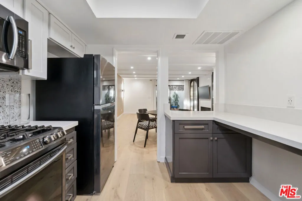 A rare gem in West Hollywood’s coveted Norma Triangle, this sleek 2-bedroom, 2.5-bathroom townhome offers the perfect balance of modern design and serene living.The townhouse has been fully updated. A custom bar/wine bar was installed, adding a touch of sophistication and style for entertaining. Every detail has been thoughtfully considered to create a welcoming space that feels both chic and comfortable.Inside, you’ll find an expansive open-concept living and dining area centered around a cozy gas fireplace. The recently renovated gourmet kitchen shines with stainless steel appliances and a stylish breakfast bar. Upstairs, both bedrooms feature ensuite bathrooms, with the primary suite offering its own fireplace and a true sense of retreat.Additional highlights include in-unit laundry, central AC/heat, LED recessed lighting throughout, and community perks like a heated pool and two tandem underground parking spaces. Best of all, the location can’t be beatjust moments from the San Vicente Bungalows, Petit Ermitage, Pavilions, and West Hollywood Park.This is a rare opportunity to own a fully updated, stylish townhome in one of West Hollywood’s most desirable neighborhoods. Can come partially furnished: Flat panel TV; Dining table & chairs; patio bistro table & chairs; brand new King bed frame/mattress. Disclaimer: Virtual/AI staging in some listing photos.