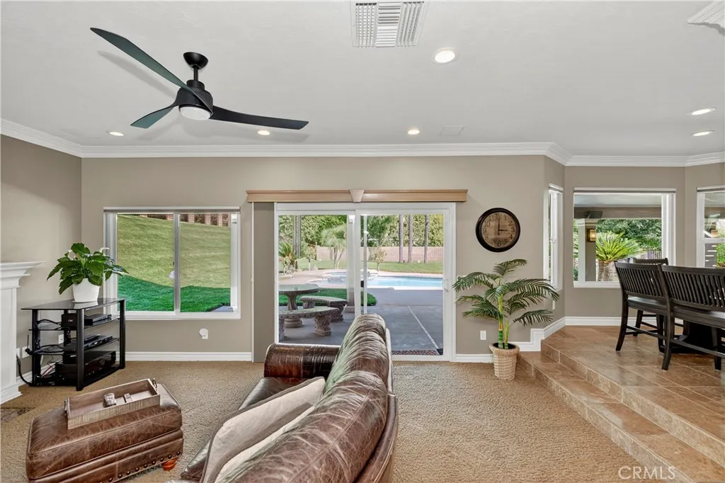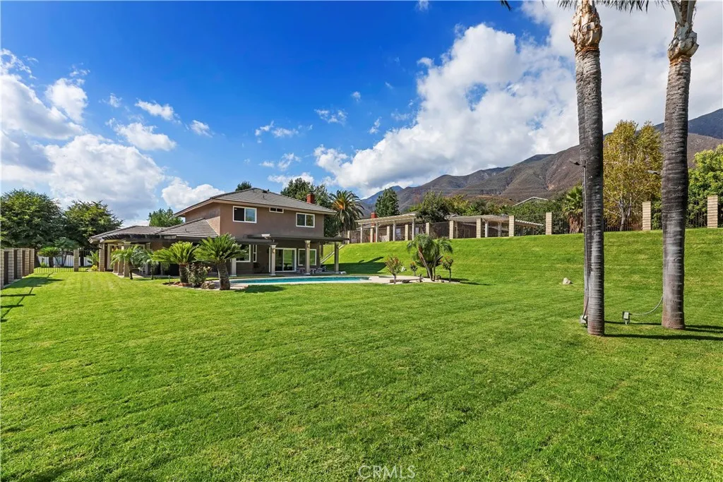 High up on the hill, over 2000 feet above sea level, sits this gorgeous property meticulously maintained over the years. 2387 Sq/Ft of living space on a 19,000 Sq/Ft lot surrounded by breathtaking views of the San Gabriel mountains.The home’s inviting foyer greets you with custom double glass front entry doors, setting the tone for the expansive formal living room and dining room, where windows and French doors flood the space with natural light.