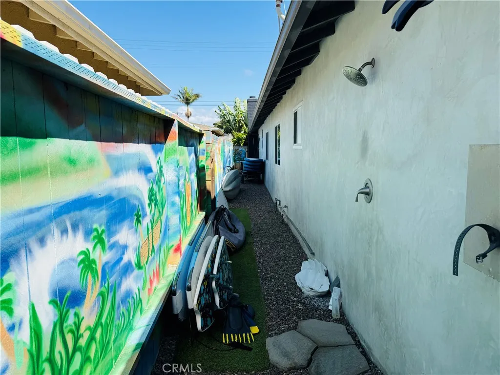 The outdoor spaces are just as inviting. Enjoy your private front yard with lush landscaping, fruit trees, and an above-ground jacuzzi tub—perfect for unwinding after a surf session. Rinse off in the outdoor shower and store your surfboards in the side yard designed for coastal living.