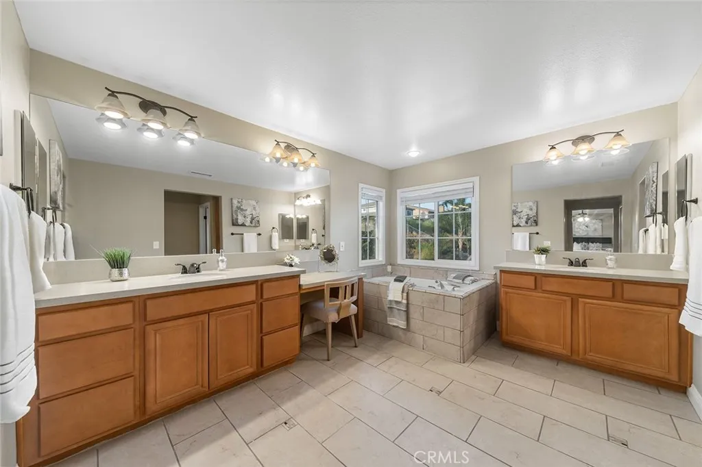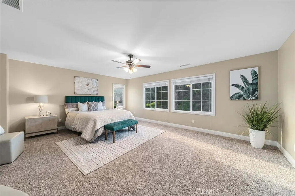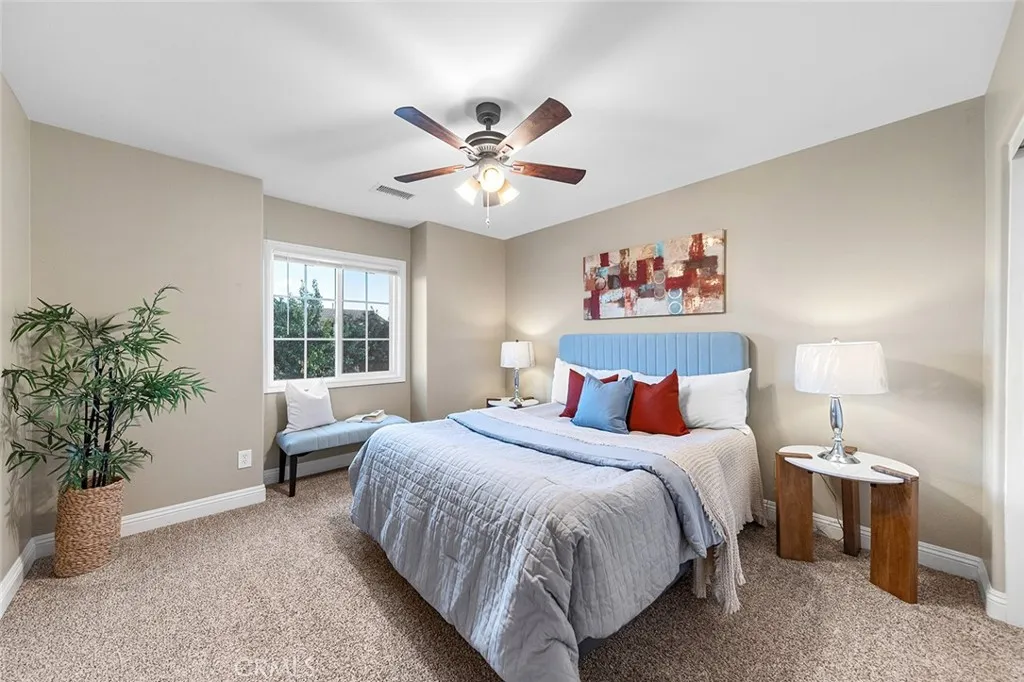 Spacious & inviting home with ideal layout for modern living featuring gorgeous XL kitchen, upgraded primary bathroom, window casings, rich wood, tile & carpet floorings, a roomy tandem 4-CAR garage, a sizable side yard offering an abundance space for your outdoor toys & NO HOA. Great curb appeal with lush landscaping, curved steps leading to the distinctive arched entryway & a charming front porch. Experience the size of the home featuring a grand entrance with soaring cathedral ceiling & a seamless flow into the light-filled formal living room & dining room area- perfect for entertaining & family gatherings. Main floor also features a convenient full bathroom & bedroom for overnight guests, senior roommates or for use as an office. Continue on toward the Great Room – the kitchen, informal dining & family room areas all wrapped up into one fun space great for entertaining. Well- appointed XL kitchen is a true centerpiece, boasting of granite countertops & backsplash, an abundance of storage, floor-to-ceiling cabinetry, a built-in desk and a HUGE center island offering extra storage, additional prep space, counter seating & the perfect placement for setting up a appetizer station when hosting. Suitably located near the kitchen for multitasking is a large laundry room with sink & access to the backyard. Enjoy casual meals in the eat-in kitchen or at the breakfast counter convenient for everyday busy lifestyle & quiick meals on the go. Adjacent is a warm & welcoming family room featuring an entertainment center niche & a charming brick fireplace ideal for cozy evenings & TV watching. Ascend the stairs to find 4 spacious bedrooms, including a generously sized primary bedroom with plenty of space for a retreat area to your own private oasis complete with dual mirrored walk-in closets. Luxuriously upgraded primary bathroom features a soaking tub perfect for relaxation, separate glass walk-in shower with bench and pebble stone accent, dual sinks and a vanity space. The large backyard is an outdoor retreat, featuring mature palm trees, vibrant bird of paradise and a variety of fruit trees. Plenty of grass area for play and an ample space to build a pool/spa. Bring out the BBQ, set the table and dine al fresco all year long to enjoy the CA weather. This home is also assigned to award-winning schools: John Golden Elementary, Day Creek Intermediate and Los Osos High. Truly an exceptional home with so much to offer- size, functionality & entertainment value.