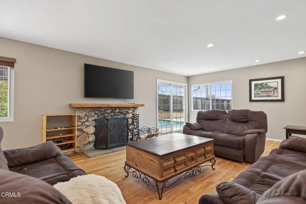 Welcome to 1018 Via Arroyo. Perched on the desirable Ventura hillside, this spacious 2,537 sq ft home offers comfort and ample living space. Nestled on a generous 9,583 sq ft lot, the home is designed for both relaxation and entertaining, complete with a sparkling pool, spa and multiple patio spaces for enjoying the serene mountain views. Inside, hardwood floors flow throughout, enhancing the warm and inviting atmosphere. The spacious living room with a classic fireplace sets the tone for gatherings, while the dedicated office provides a quiet retreat for work or creativity. The kitchen opens to the living room and a spacious dining area with lots of natural light. The oversized downstairs bedroom features its own private slider to the backyard patio, creating a seamless indoor-outdoor connection. The expansive primary suite offers an ensuite bath and dual closets, while the two additional upstairs bedrooms share a hallway bath with dual sinks. Ample storage closets throughout the home ensure everything has its place. With its breathtaking setting, versatile floor plan, and entertainer’s backyard, this home captures the essence of hillside living in Ventura’s sought after Ondulando community. Don’t miss out on this incredible opportunity to call this one home!