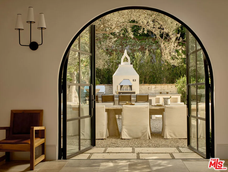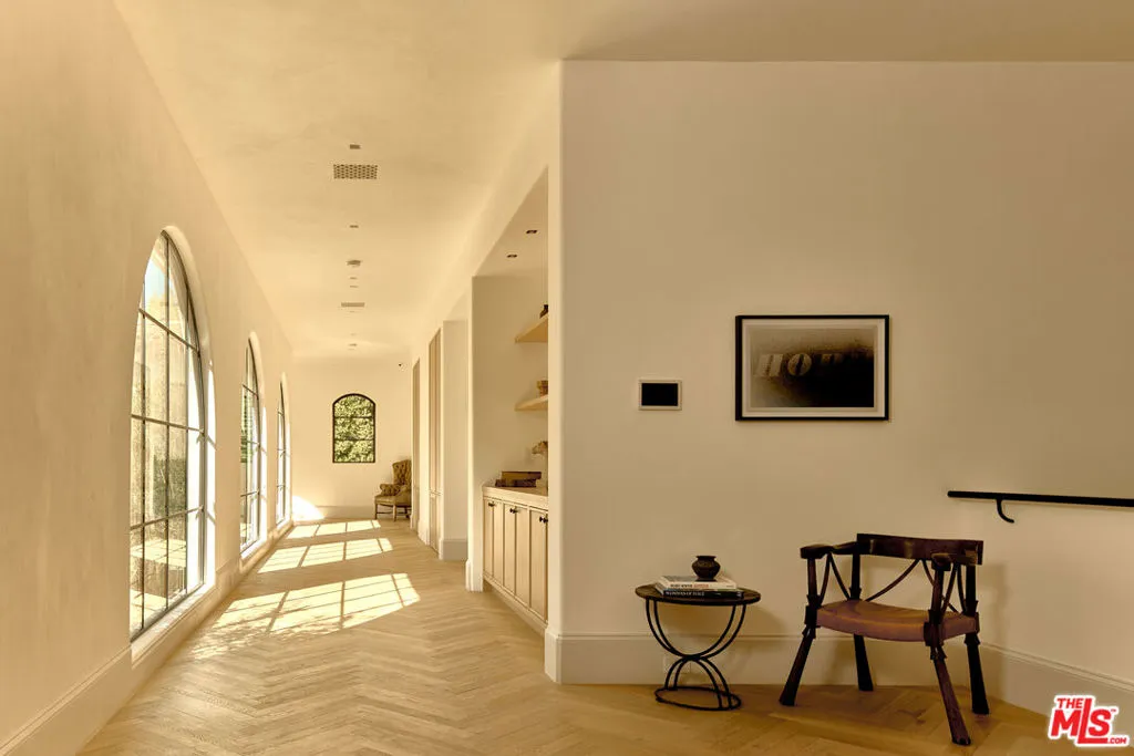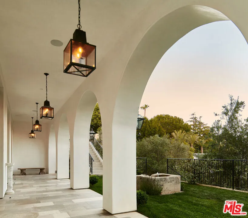 Set behind gates on nearly an acre in Lower Bel Air’s coveted Platinum Triangle, this Contemporary Tuscan estate blends timeless European craftsmanship with modern California living. A circular motor court framed by mature trees and a French fountain sets a grand tone of privacy and sophistication. Light-filled interiors highlight artisan plaster walls, white oak floors, and an effortless connection to a central courtyard with olive trees, fire features, and a full outdoor kitchen an ideal backdrop for entertaining. The chef’s kitchen boasts a striking Calacatta marble island, butler’s pantry, and premium appliances, while formal dining and living rooms are enriched with antique fireplaces and steel-framed doors that open wide to garden and pool views. Amenities include a private gym with bath, a theater with separate entrance, and multiple indoor-outdoor lounges. Upstairs, the primary suite offers dual spa-inspired baths, custom closets, and a private terrace. Additional en-suite bedrooms, a family lounge with bar, and a great room extend the living space. On the garden level, a spacious bar and lounge open directly to the yard, creating a seamless setting for gatherings of any size. Surrounded by citrus groves, century-old olive trees, and landscaped gardens, this gated estate offers resort-style living in one of Los Angeles’ most prestigious settings.