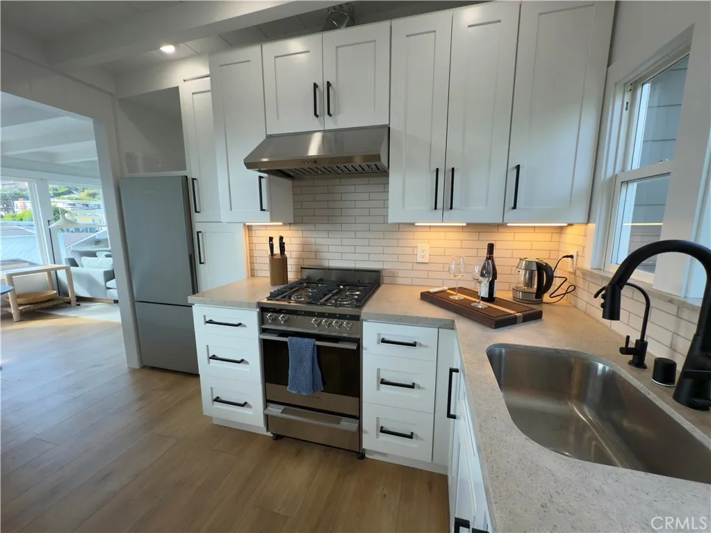 Brand new remodeled Cottage/Back House with panoramic Ocean, Catalina, and City Light views in North Laguna, just above Boat Canyon. This charmer is turn-key, was taken down to the studs and rebuilt with all high-end materials, and is just 2 blocks from the beach (Divers Cove, Heisler Park, and Fisherman’s Cove). Enter from the back (off alleyway or along private path along East side of 252 Grandview to back) to an open deck surrounded by lemon trees. A wall of windows in the Living Room offers sweeping Ocean Views. High-beamed ceilings and new wood floors create a bright, beachy chic escape with tasteful decor and a large flat-screen TV. The remodeled kitchen has top-of-the-line appliances and is completely equipped with dishware, cookware, coffee machine, etc. for a comfortable stay. Full-sized stackable laundry in Hallway closet, new bathroom with step-in shower and a primary bedroom with a King-sized bed, flat-screen TV and walk-in closet. A/C and Instant Hot Water Heater. There is an outdoor shower for washing off the sand after a relaxing day at the beach. Restaurants and shopping are just steps away at Boat Canyon (Pavillions, ReUnion Kitchen, Grazie Pizza, Jan’s Health Bar, Asada Tacos, and Black Dot Coffee) along with Gallery Row and all Village shops. Inquire about availability.