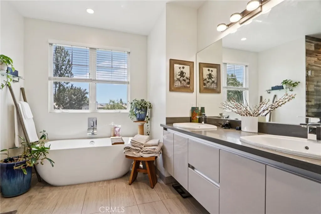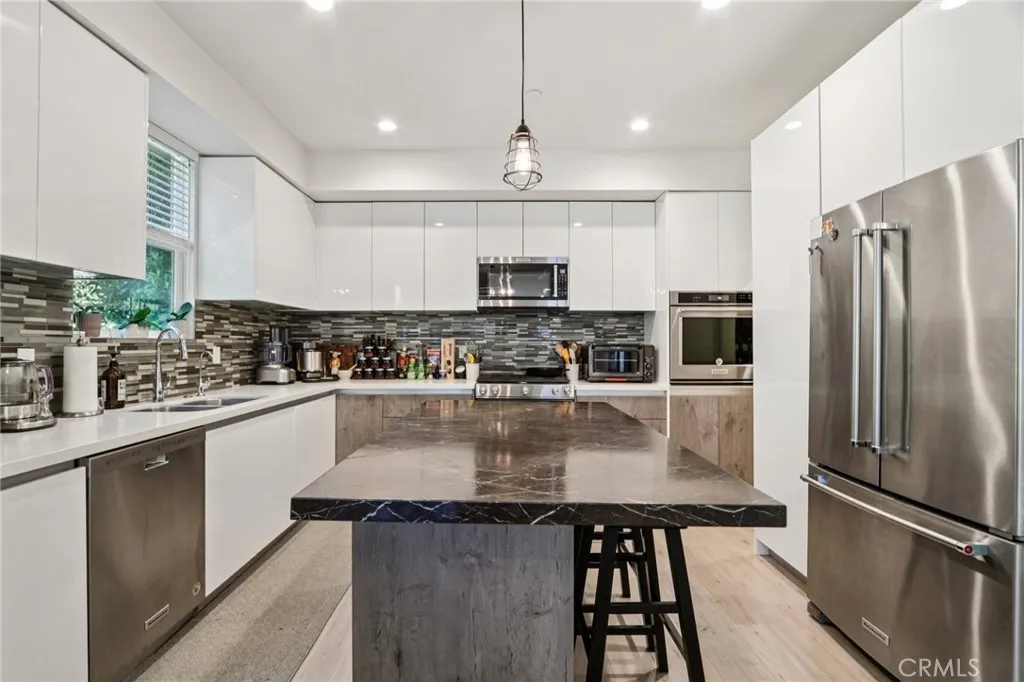 Welcome to Cooper Place! This newer-built traditional Modern Farmhouse features 4 bedrooms, 3 bathrooms, and over 2,500 sqft of living space, all sitting on a beautifully landscaped lot just under 6,000 sqft of land. A charming foyer welcomes you into the open-concept living room, dining area, and modern chef’s kitchen complete with a large center island, quartz countertops, and stainless steel appliances. Upstairs, you’ll find a convenient laundry room and the spacious primary suite with vaulted ceilings, a walk-in closet, and a luxurious en-suite bathroom featuring dual sinks, a walk-in shower, and a soaking tub. Step outside to the private entertainer’s backyard surrounded by mature trees, offering plenty of space to add a pool. Additional highlights include a downstairs bedroom and full bath, laminate flooring, and recessed lighting throughout. The home is tucked away on a private cul-de-sac with a large driveway and incredible privacy. Bringing South of Ventura vibes to Winnetka.