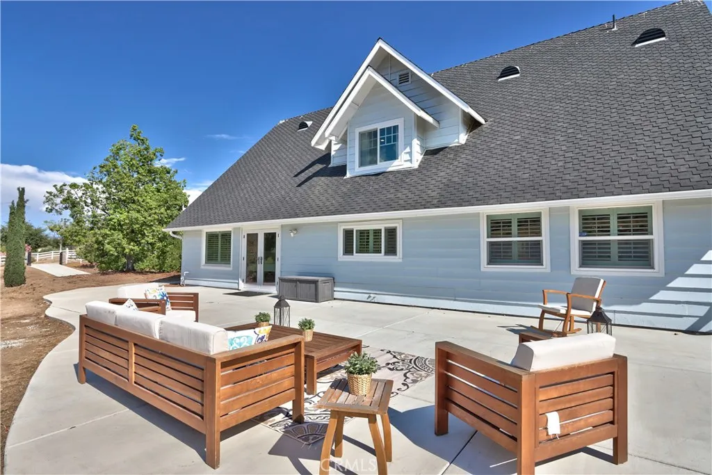 Country Living in Temecula Wine Country – Completely Remodeled Turnkey Home Welcome to this beautifully updated home offering country living just minutes from town. Situated on 2.43 acres this 3-bedroom, 2-bath home boasts 2,081 sq. ft. of living space, a 2-car garage, plus a 700 sq. ft. 2-story barn garage with loft. Every detail has been thoughtfully upgraded: new top-of-the-line composition roof, full septic system replacement, smooth coat walls & bullnose corners, fresh interior/exterior paint, dual-pane windows, hardwood flooring throughout, remodeled bathrooms with custom tile, new cabinetry, lighting. Additional upgrades include a tankless water heater, new A/C, new garage doors, crown molding, baseboards, and custom shutters. Enter the front door to find the living room, perfect room for entertaining, kitchen is open to the living room has plenty of cabinet space, bead board ceiling an island and window over the sink to enjoy the views of the backyard, the dining area is spacious and open to the kitchen with gorgeous reclaimed wood ceiling and hand honed beams, chair rail and wainscoting on the walls, and new french door leading to the backyard. There are two spacious bedrooms downstairs with a fully remodeled bathroom. Stroll upstairs, to find a second family room area or use the entire upstairs for a private primary bedroom living space. Primary bedroom is gracious in size, with 3 closets, large walk in, and two smaller closets, with a private bathroom ensuite that has been completely updated. The home has a large attic space for a potential 4th bedroom. Outdoors, enjoy the