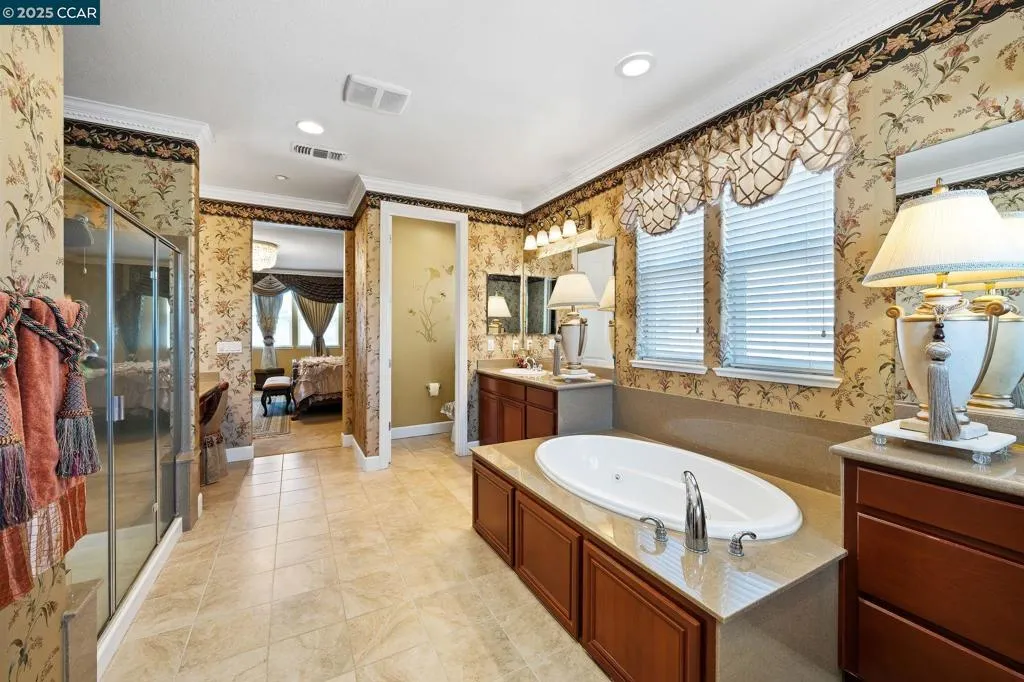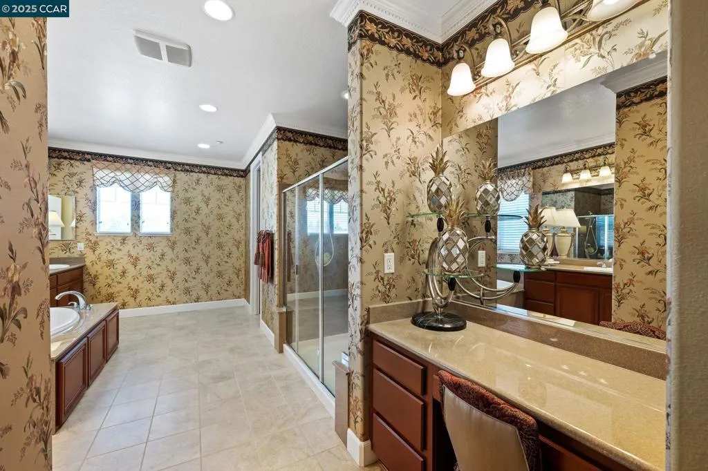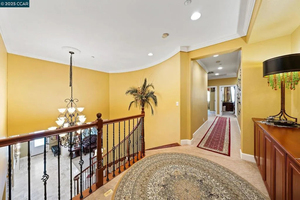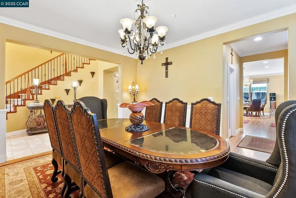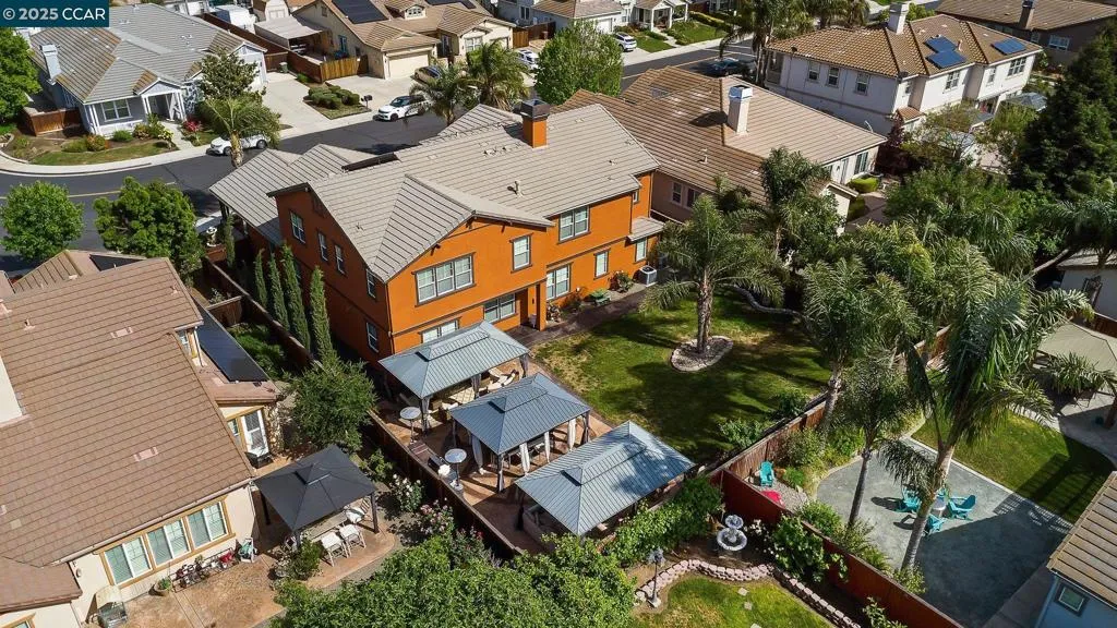 Step in to 4,314 sq. ft. of elegance! A custom fountain and expansive front porch set the tone, leading into a grand entry with sweeping staircase and dazzling chandelier. The gourmet kitchen features granite counters, stainless steel appliances, and a central island ideal for gatherings. Multiple living spaces—including two living rooms, a formal dining room, and a family room—flow seamlessly with marble flooring and designer carpet throughout. Upstairs offers five generous bedrooms with direct or Jack & Jill bath access, some with balconies. The primary suite is a retreat of its own, with a fireplace sitting area, spa-like bath with soaking tub, dual vanities, and walk-in closet. Though currently without a downstairs bed/bath, the flexible layout offers excellent potential to create one—perfect for guests, multi-generational living, or a private office. Outdoors, enjoy an entertainer’s dream with stamped concrete, three pergolas, a built-in grill, lush lawn, and palm trees. Conveniently located near the new Costco and local parks, this home blends sophistication, comfort, and opportunity.