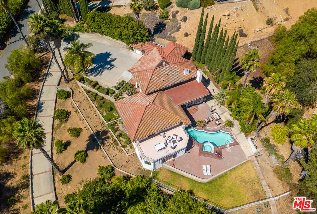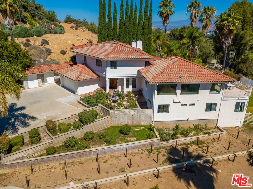 **Impressive Grand Estate with Rental Income Opportunity** Discover this impressive grand estate, ideally located on a hilltop, providing a peaceful sanctuary with panoramic views of the city and mountains. This property is an exceptional investment opportunity, currently occupied by a reliable tenant. Buyers can choose to retain this source of income or transform this stunning residence into their personal oasis.This beautiful home features 4 spacious bedrooms, 5 bathrooms, and a dedicated office, all meticulously maintained and designed for comfortable living. The main level is an entertainer’s dream, featuring a custom bar, a welcoming fireplace, and expansive windows that frame captivating views of the pool deck, mountains, and flourishing palm trees. The warm ambiance is enhanced by elegant wood-beamed ceilings that add character to the space.The primary suite serves as a private retreat with large sliding glass doors that open to a luxurious balcony and sun deck. It also includes a generous walk-in closet and a beautifully appointed en-suite bathroom. The kitchen showcases superior craftsmanship and flows seamlessly to a large deck, perfect for enjoying stunning vistas of the surrounding landscape and pool. Nestled on over an acre of landscaped grounds, the property boasts a delightful fruit garden featuring orange, lemon, pomegranate, and grapefruit trees, perfect for those who appreciate fresh produce. The extensive driveway offers ample parking and easy access, complemented by additional outdoor storage solutions for convenience. Designed for versatility, this estate includes a separate bonus room that can function as a gym, extra bedroom, playroom, or family room ideal for multi-generational living and flexible use. This grand residence provides an unparalleled blend of natural beauty and functional living space, making it a perfect choice for both savvy investors and families seeking a remarkable home.