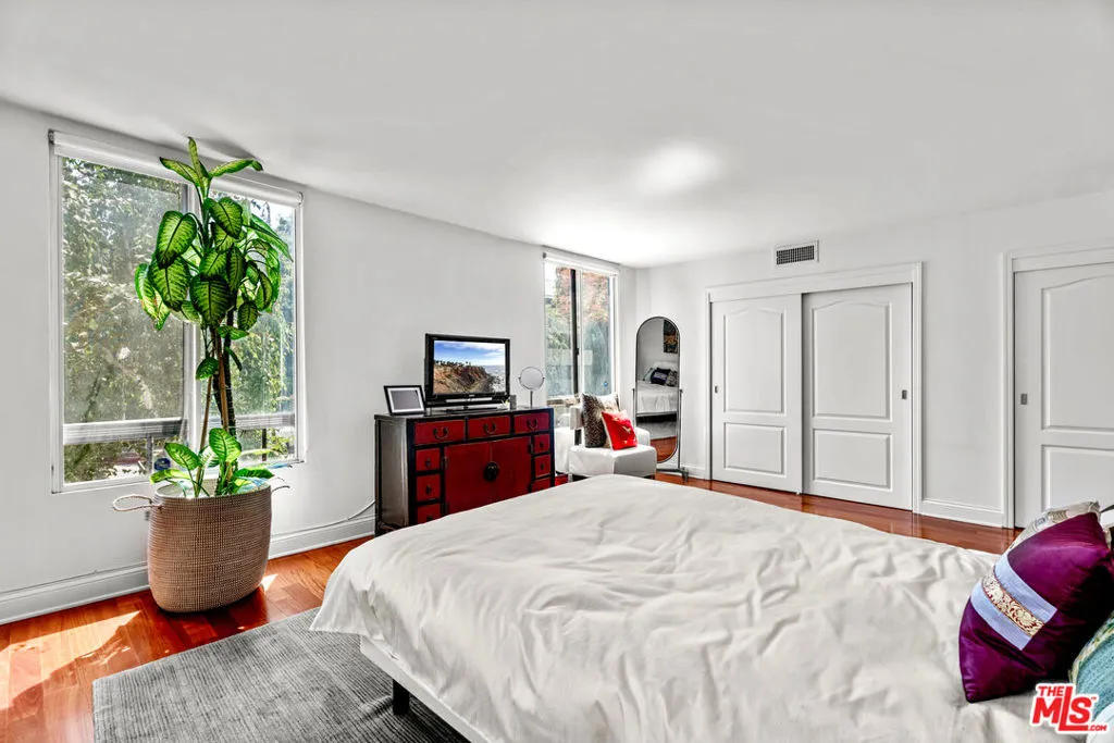 Stunning, bright 2 bedroom ,2 bathroom, single level, corner unit in the coveted Kings West building , located in the heart of West Hollywood. With north/northeast exposure, sunlight radiates throughout this spacious 1600 square foot unit. Impeccably updated kitchen with Viking appliances, U-Line wine cooler, quartz countertops and back splash. Living room features a lovely, inviting balcony and beautiful fireplace. Wood flooring throughout. Recessed lighting throughout. In unit Laundry. The large corner Primary Suite has no common walls and is flooded with natural light from two sides, and features dual closets and built-ins. Upgraded HVAC. Lots of storage throughout the unit. 2 side by side parking spots in the gated garage. Kings West is a very well maintained building with great amenities , including in ground spa, fitness center/gym, saunas, guest parking, sun drenched courtyard, EQ Insurance and extra storage. This Prime West Hollywood location is only blocks away from Melrose and Santa Monica and all of West Hollywood’s finest… dining, fitness, boutiques, shopping, nightlife and more.